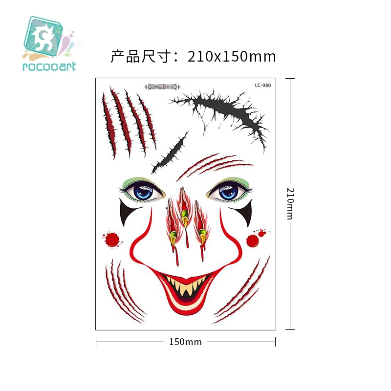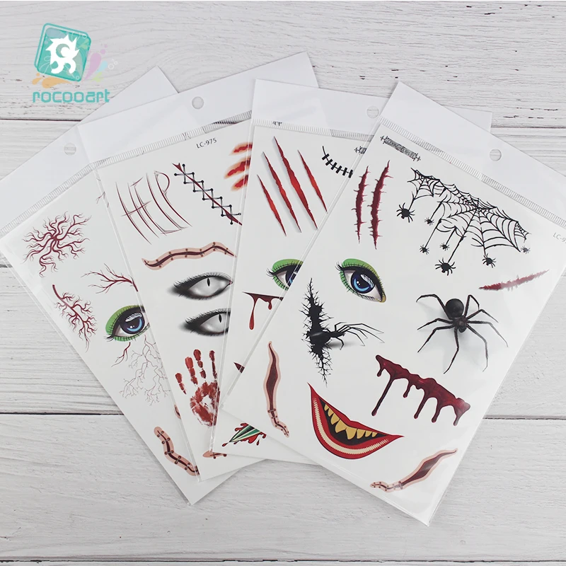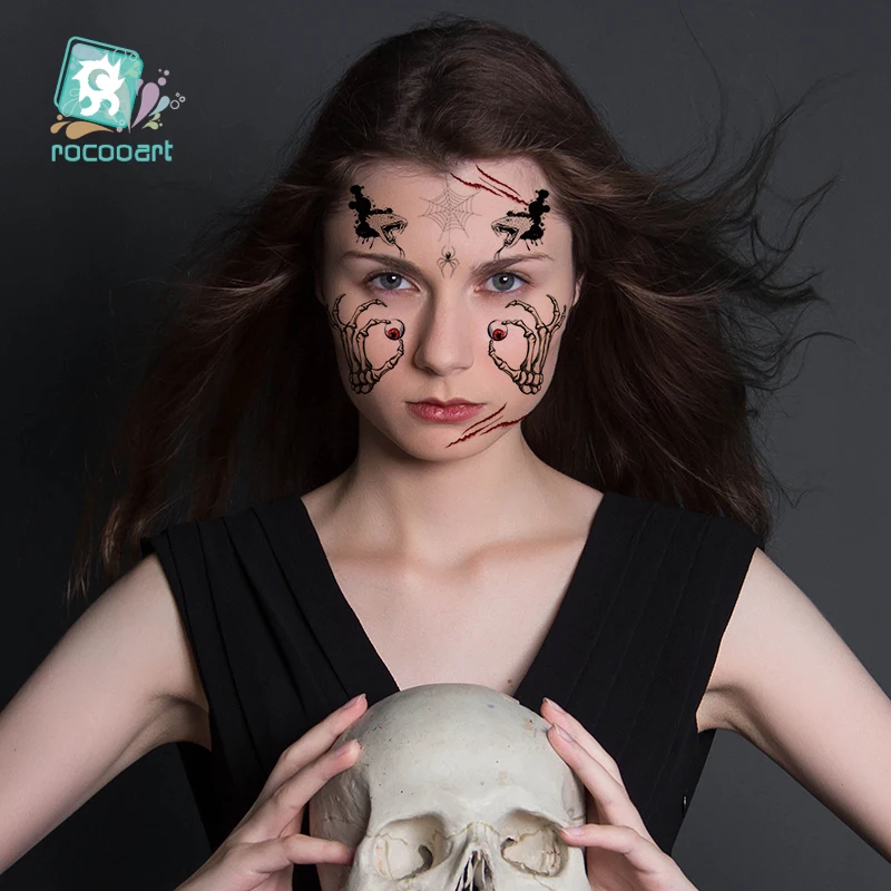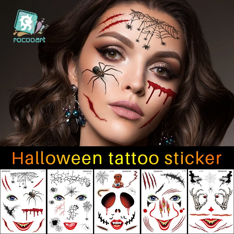 Rocooart Хэллоуин лицо тату террор Паук поддельные тату маска со шрамом Временные татуировки стикер Макияж вечерние татуировки водонепроницаемые тату