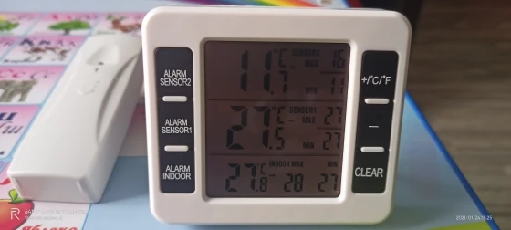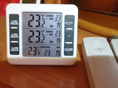Прост в использовании. У меня есть передатчик, в Ланчбокс, чтобы сохранить сухость, в саду и на другом устройстве в теплице, нет проблем с получением сигнала внутри дома около 30 м. Кажется точным по сравнению с традиционным термометром.