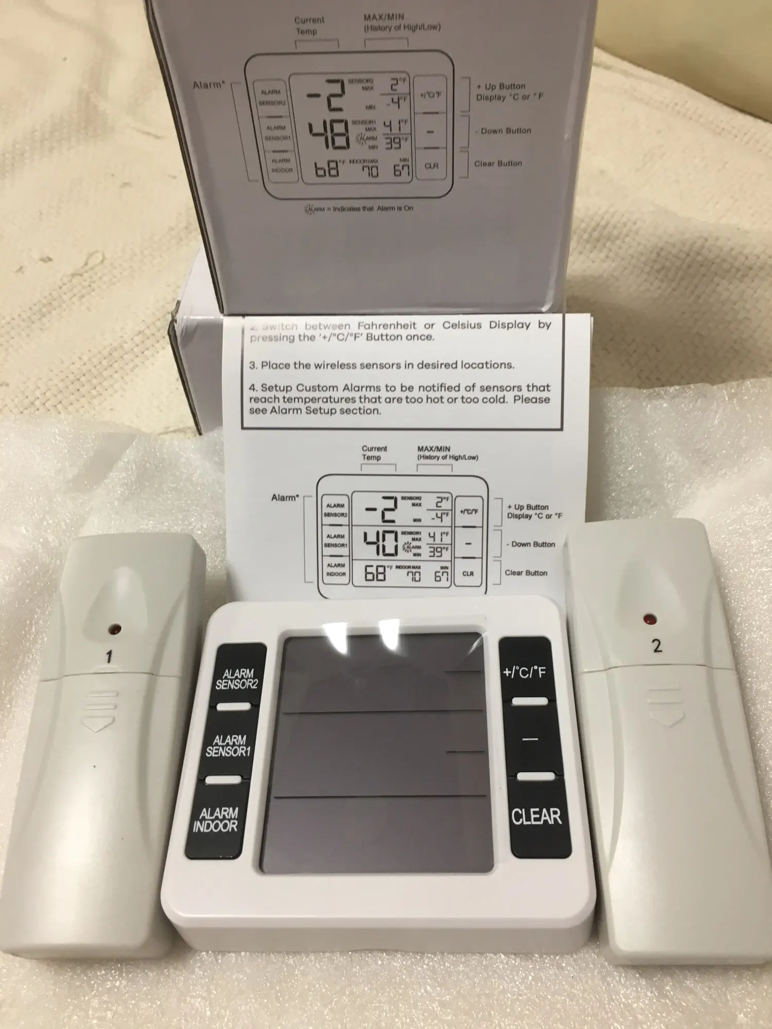 Товар получен. Упаковка нормальная. Коробка с картинкой в пупырках. Вставил батарейки, Термометр нашел оба датчика. Показывает температуру почти одинаково! Разное время синхронизации из за этого разнятся показания в 0,2- 0,1 градуса. Отлично! Спасибо за товар и отправку! Мои наилучшие рекомендации!!!