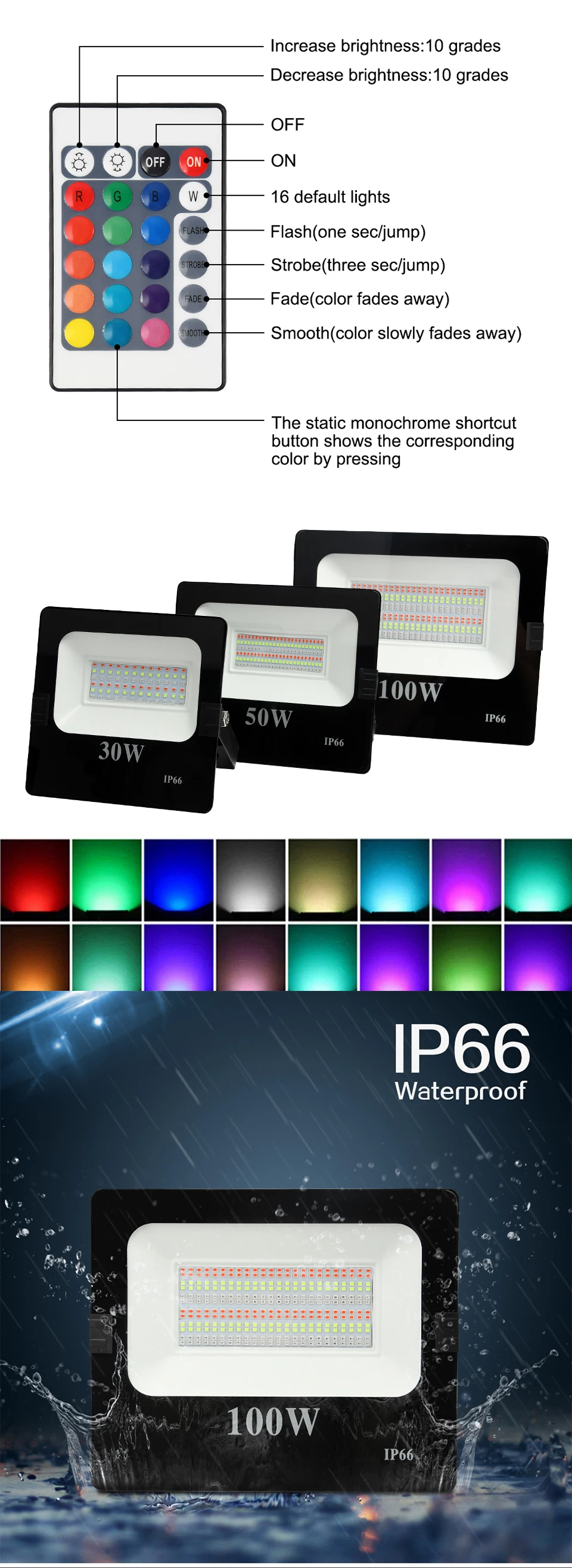 Светодиодный прожектор Rgb, водонепроницаемый Уличный настенный светильник с отражателем, точесветильник светильник ip66, 30 Вт, 50 Вт, 100 Вт, 220 В
