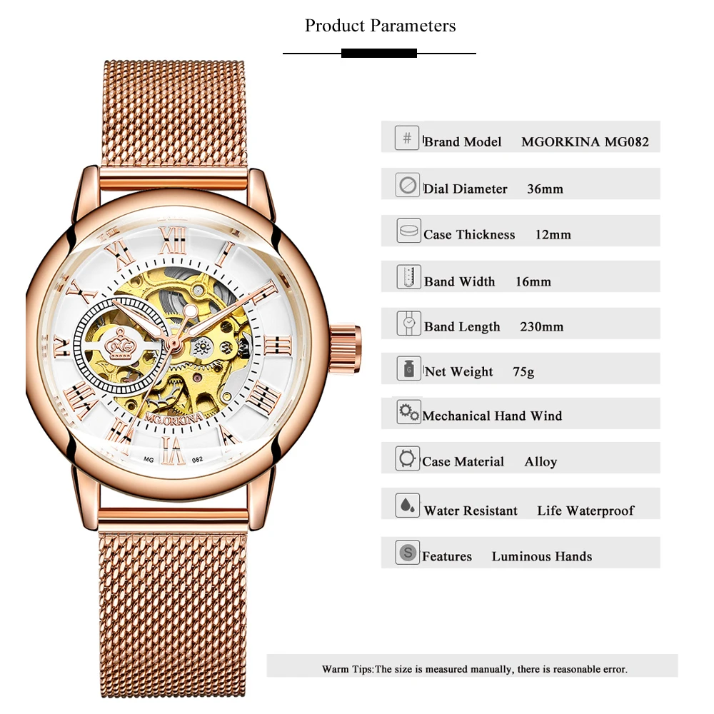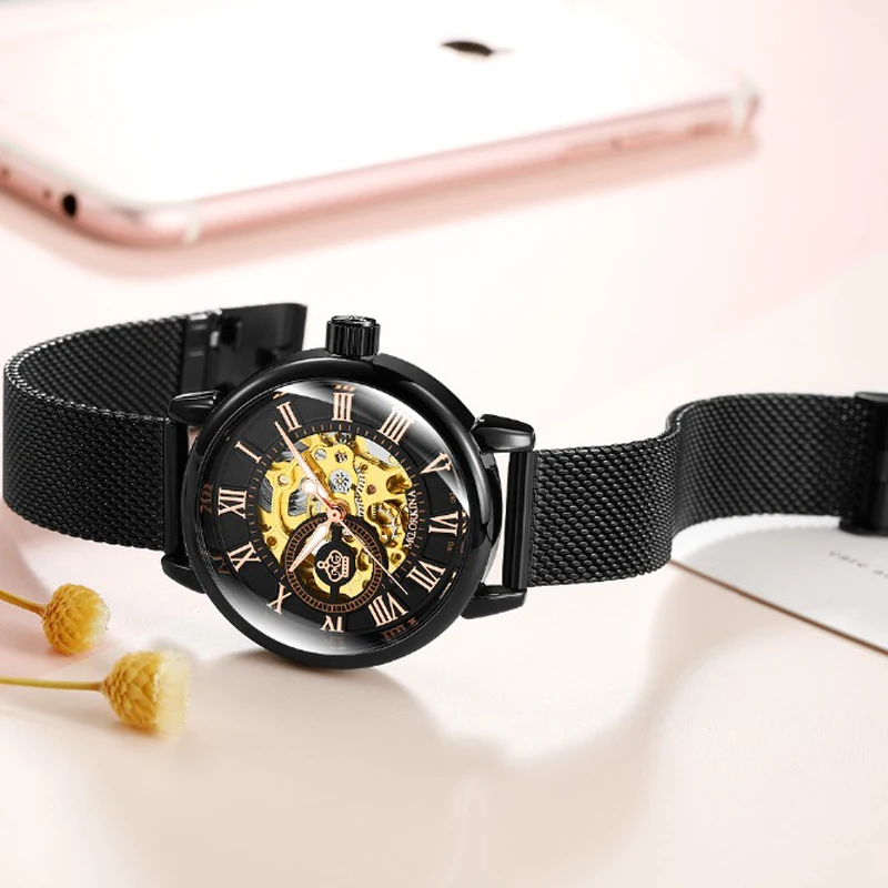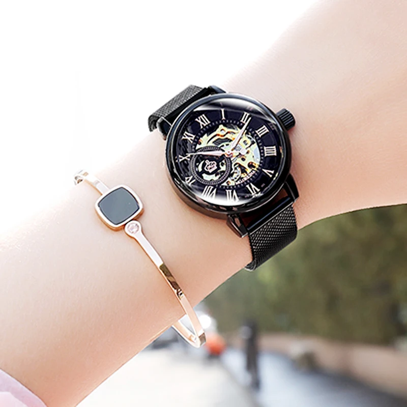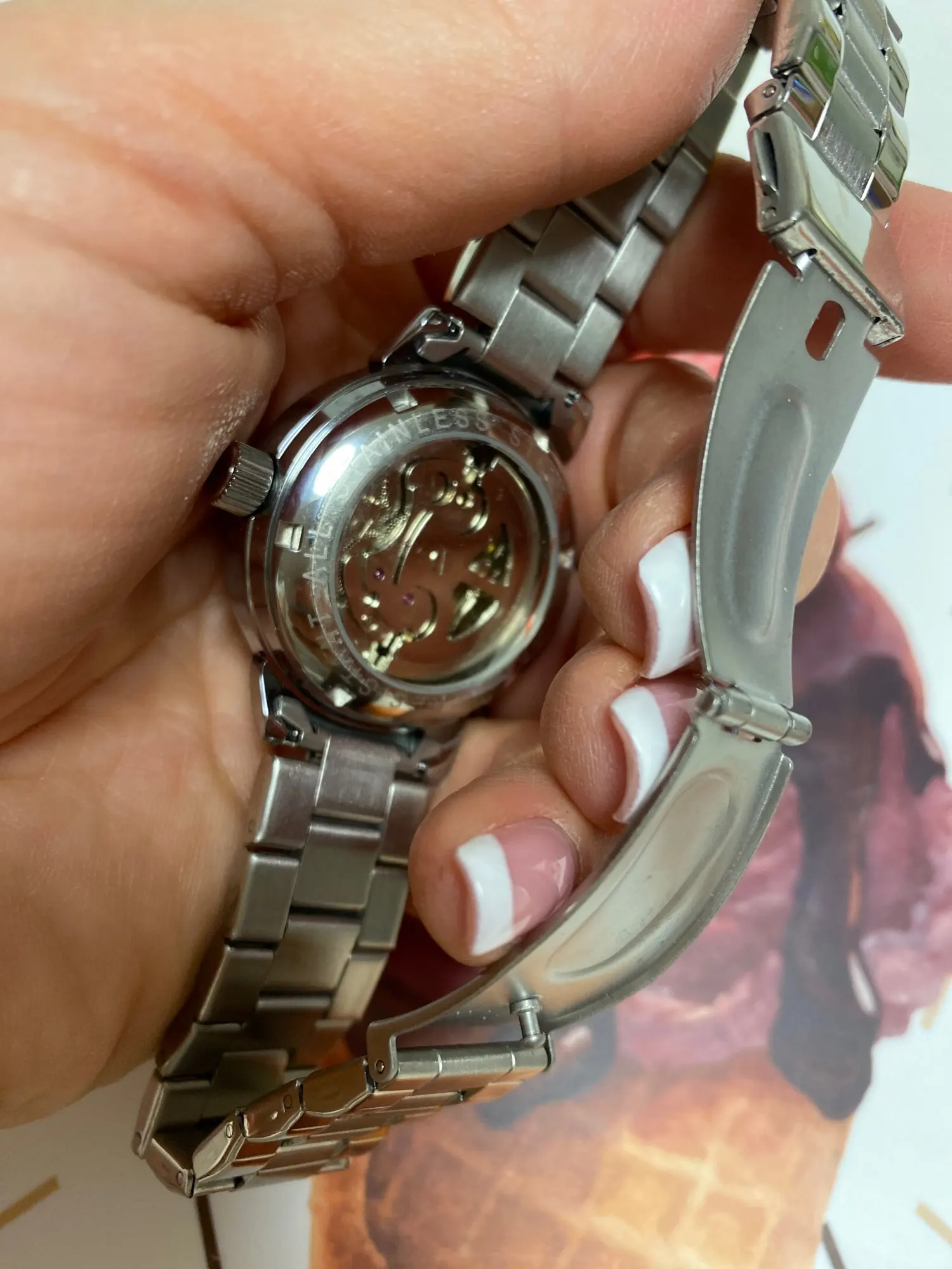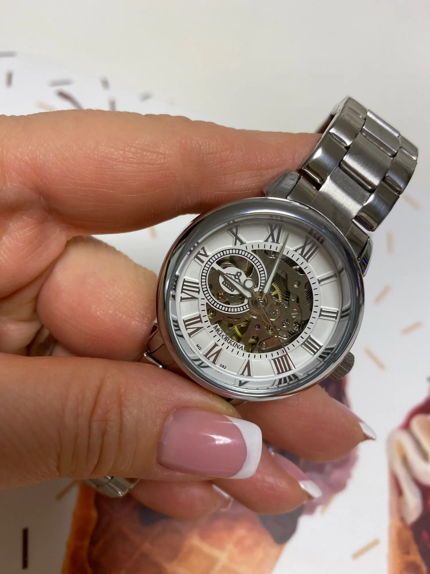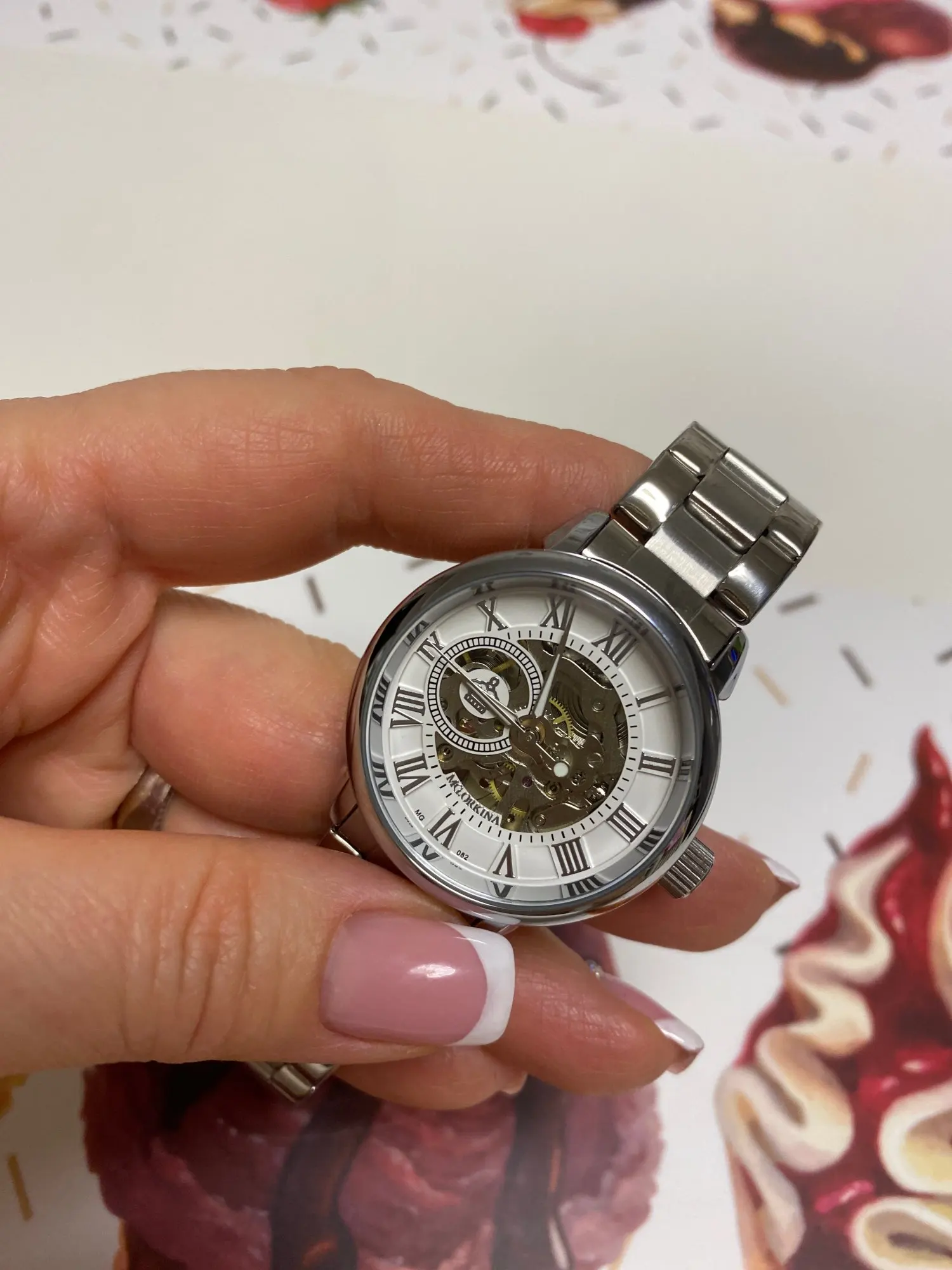 Часы женские механические, серебристые, 2019 пробы, с ремешком из нержавеющей стали