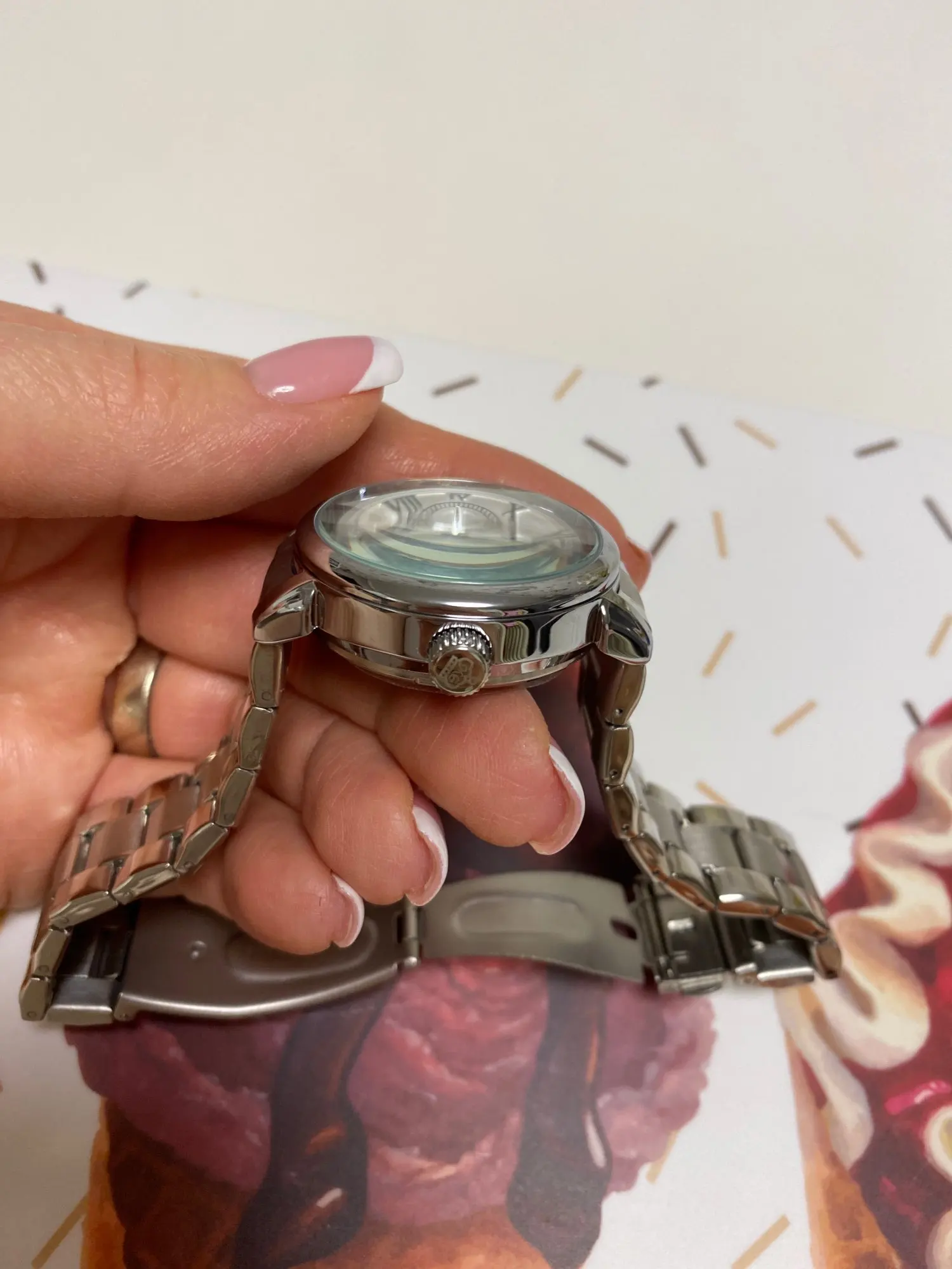Не было упаковки, часы были обернуты только плёнкой, не плотно, но не разбились. Нет инструмента, чтобы укоротить ремешок. Доставка 45 дней, это очень долго.