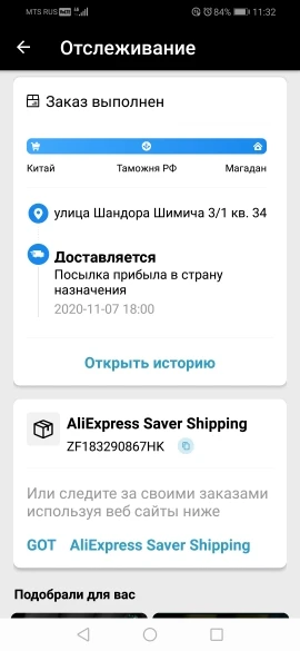Страна: KZ Ships From: China Доставка: Cainiao Super Economy 20.01.2021