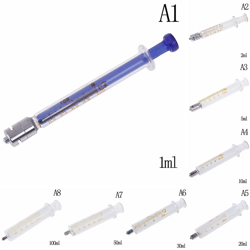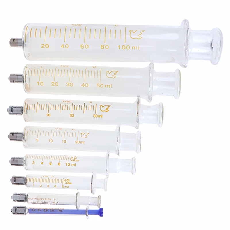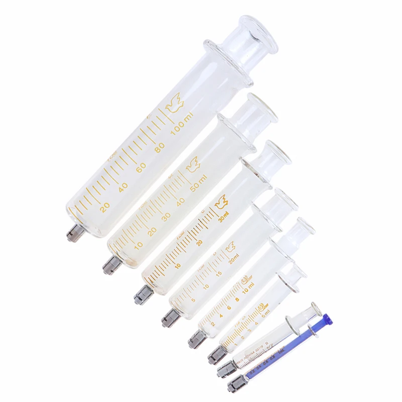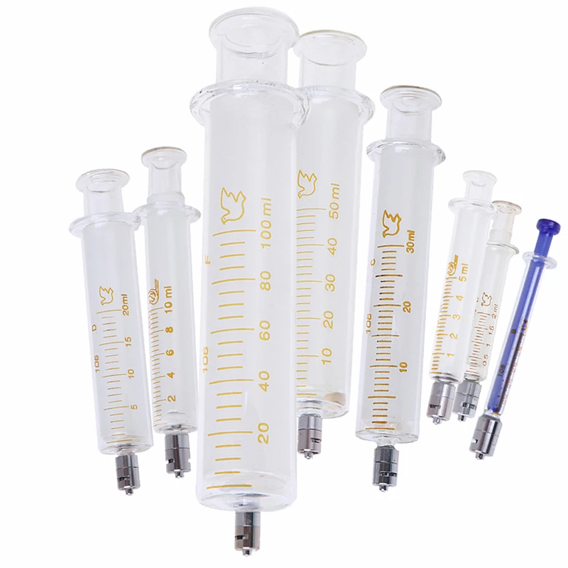 Шприц стеклянный с многоразовой головкой с замком, 1 мл, 2 мл, 5 мл, 10 мл, 20 мл, 30 мл, 50 мл, 100 мл