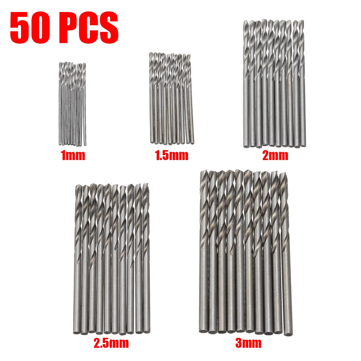 50 шт.упак. высокоскоростное спиральное сверло с титановым покрытием, 1-3 мм, набор сверл из быстрорежущей стали, набор инструментов для домашнего строительства сделай сам, электроинструменты
