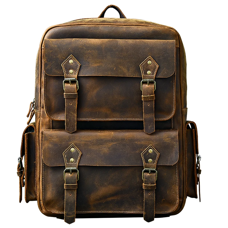 Рюкзак мужской из натуральной кожи, с отделением для ноутбука, коричневый, в стиле ретро