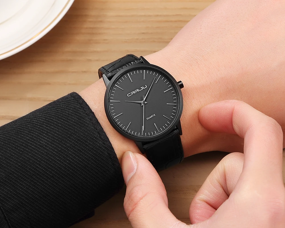 CRRJU 2117 повседневные кожаные Наручные часы для мужчин водонепроницаемые супер тонкие часы мужские спортивные часы Relogio Masculino мужские часы