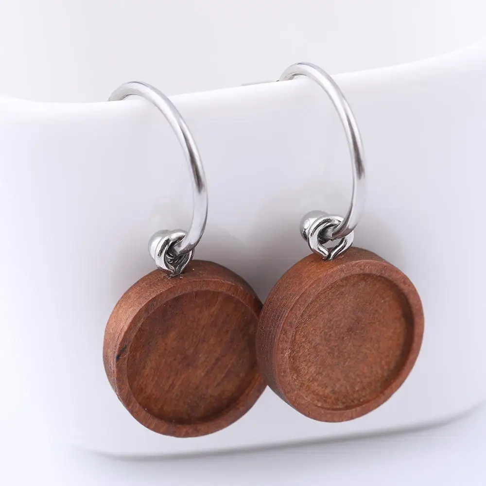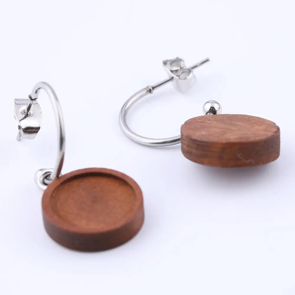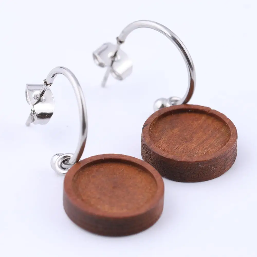 10 шт., сережки-гвоздики из нержавеющей стали, 12 мм, Круглая Кабошон, деревянная Серьга Базовые заготовки, сделай сам