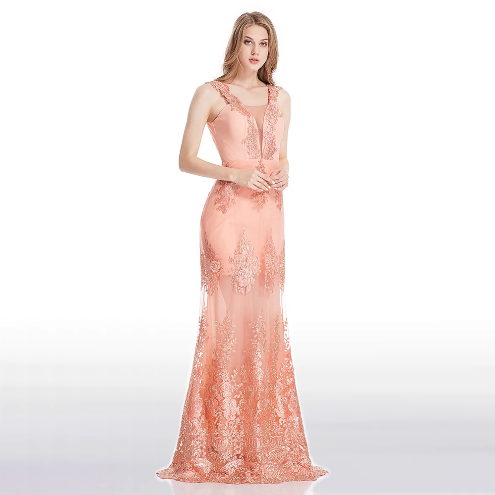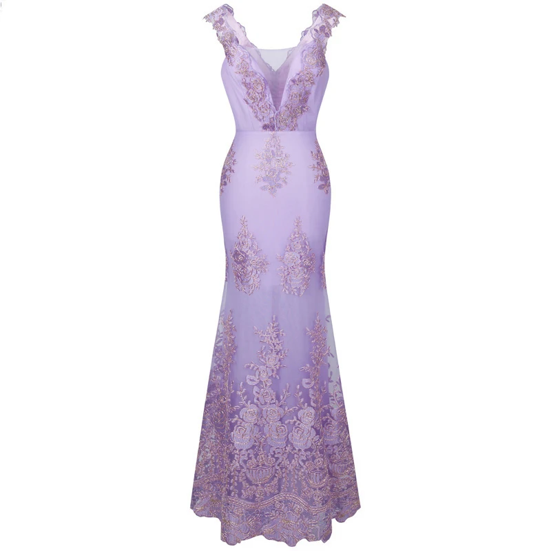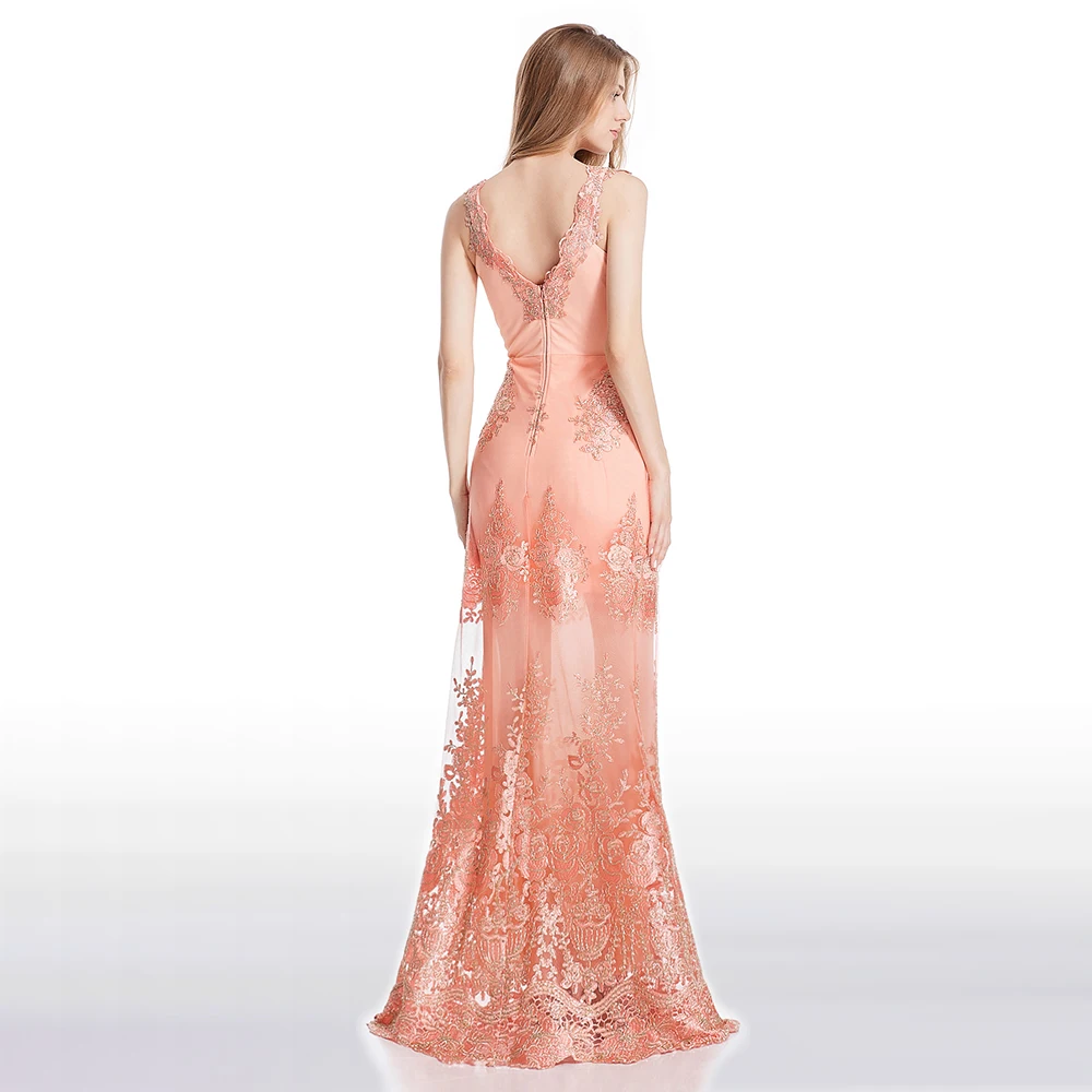 Свадебное платье с v-образным вырезом и цветочной вышивкой Подкладка и молния сзади Вечернее платье русалки без рукавов