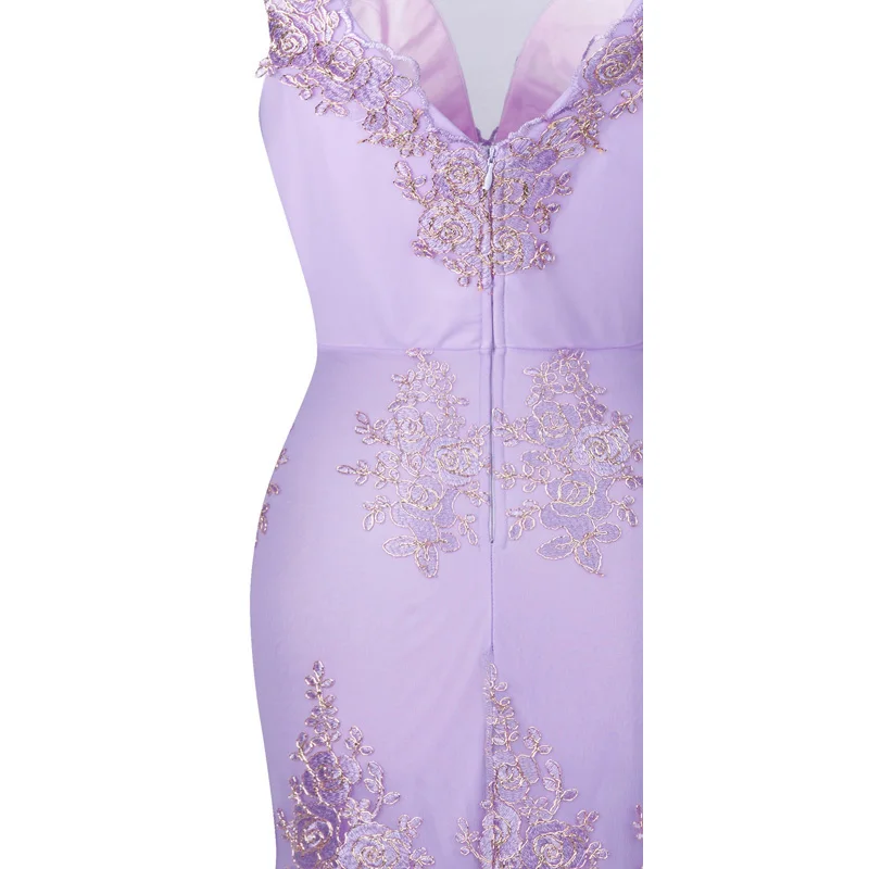 Светильник фиолетового цвета с v-образным вырезом и вышивкой