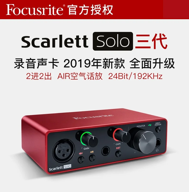 Новая Обновленная звуковая карта Focusrite Scarlett Solo (3-е поколение) с USB-интерфейсом, звуковая карта с воздушным режимом, 24 бит192 кГц, AD-конвертер