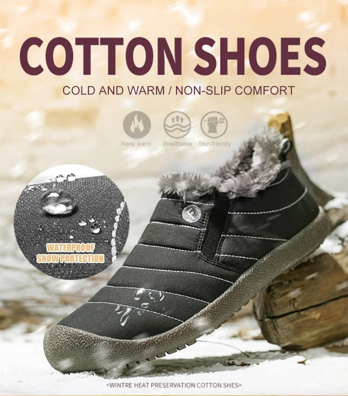Ботинки мужские зимние, однотонные, с нескользящей подошвой, водонепроницаемые, размер 36-48