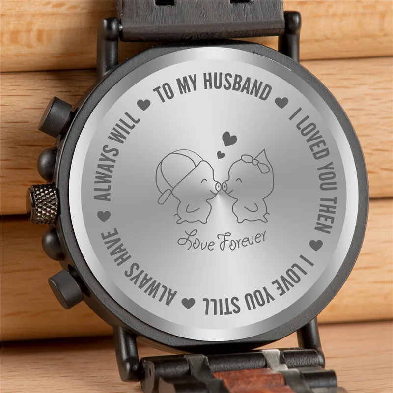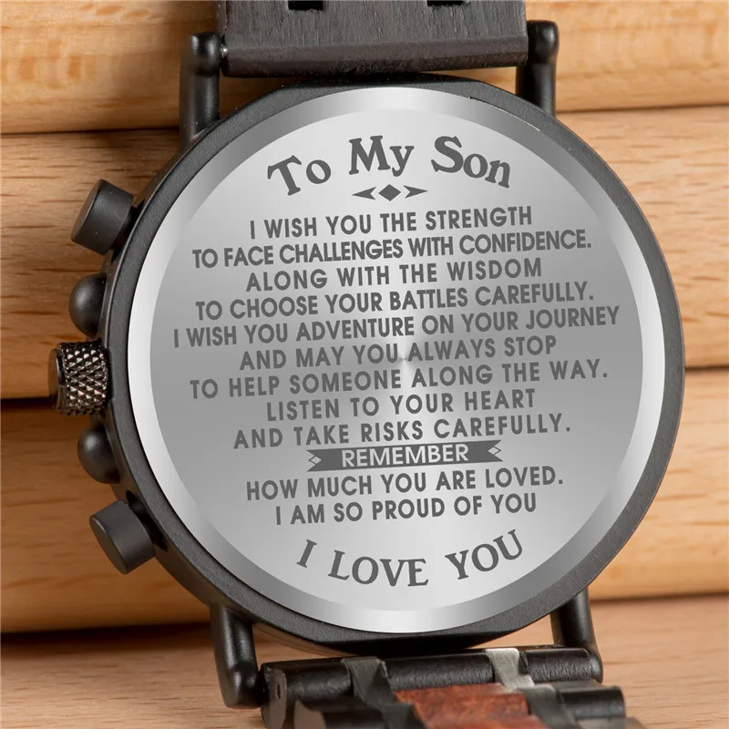 Вы можете персонализировать ваши часы с именем или фразу по вашему выбору. Задняя часть этих часов выгравирована, чтобы сделать это действительно уникальным и личным подарком, который будет цениться годами.