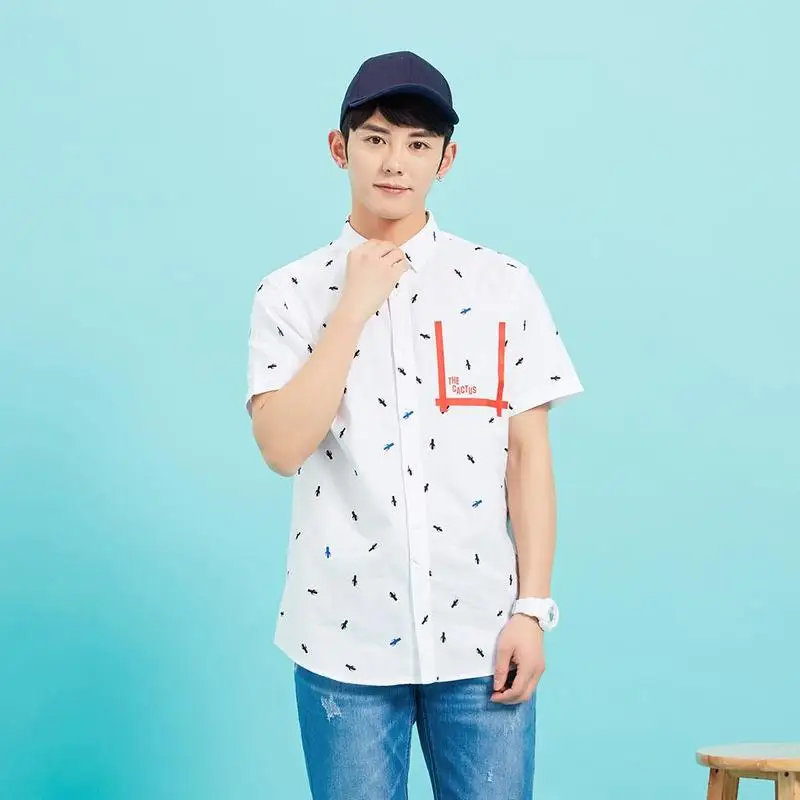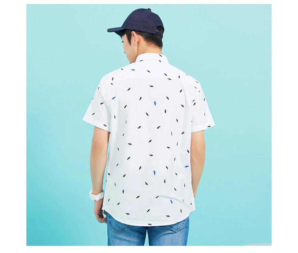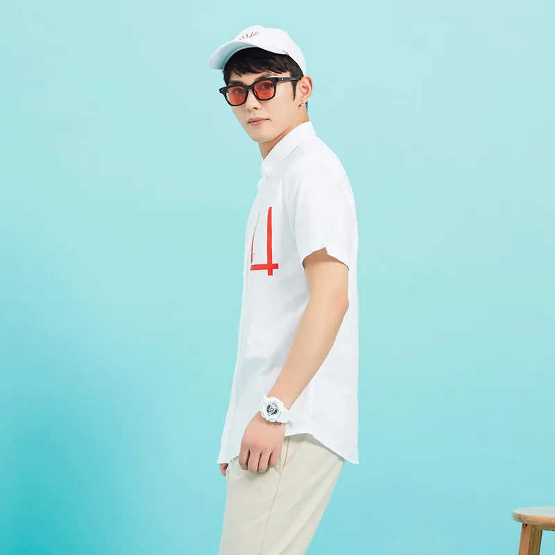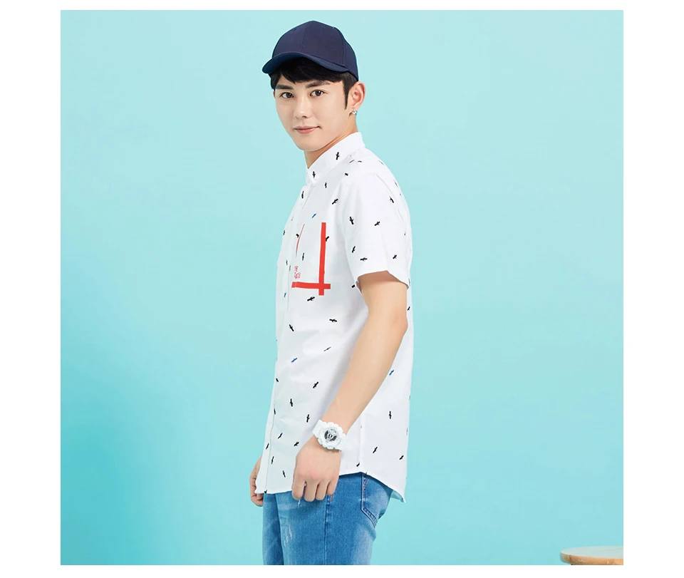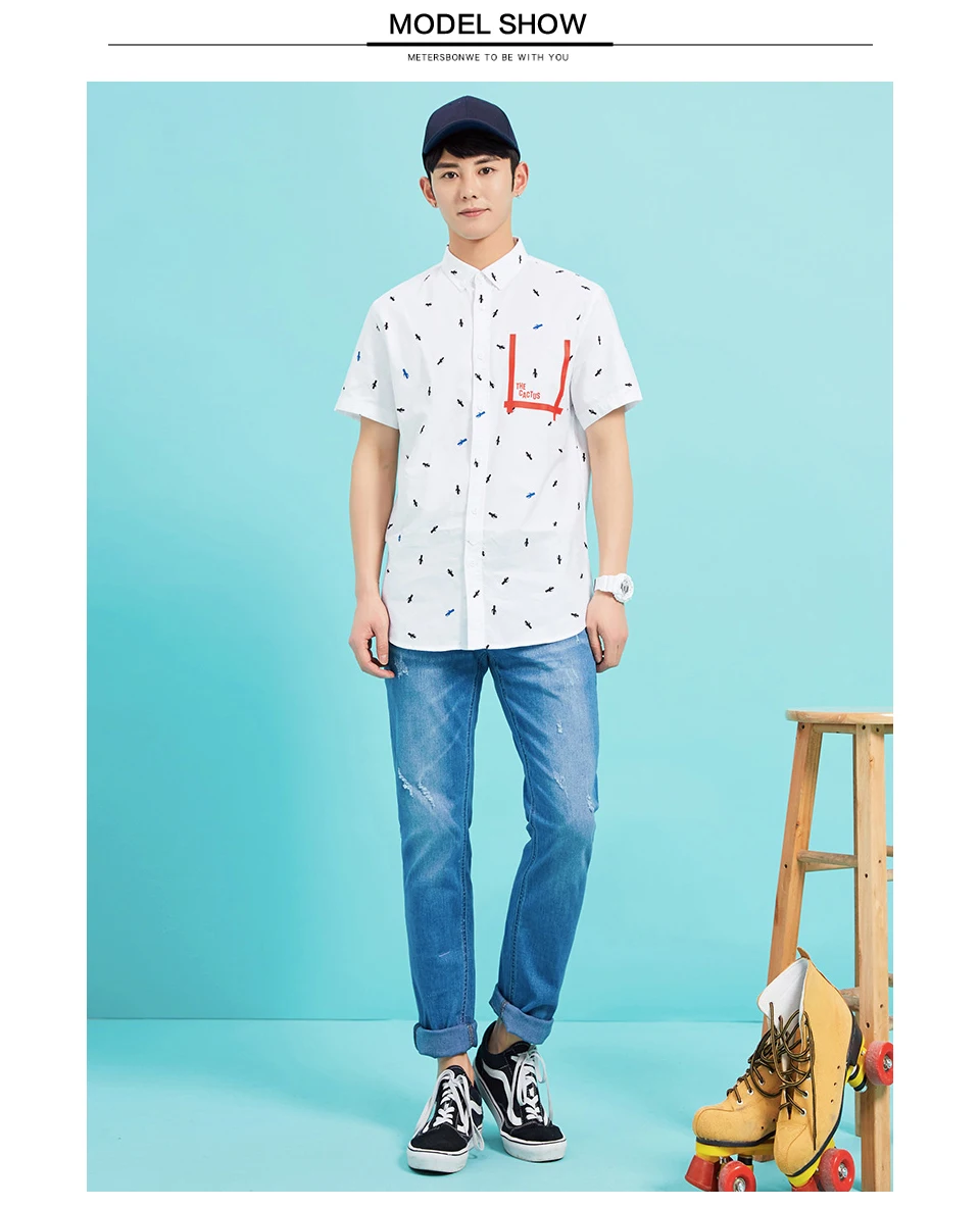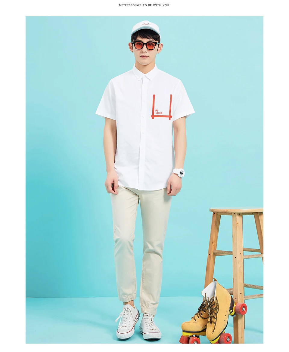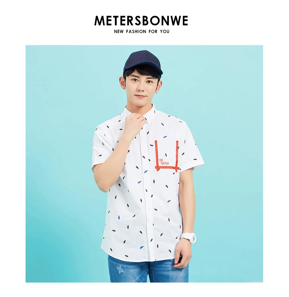 Metersbonwe мужская рубашка с коротким рукавом для мужчин, новый тренд, летняя рубашка с принтом, Гонконгский стиль, ткань Оксфорд, рубашка, мужская рубашка