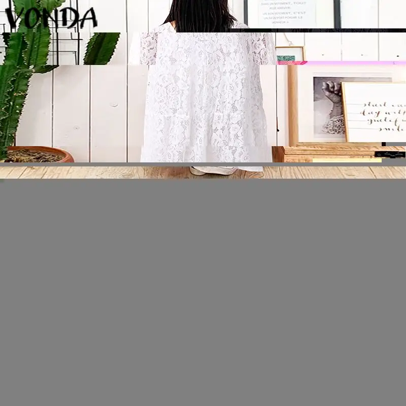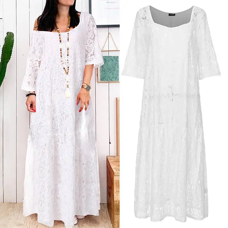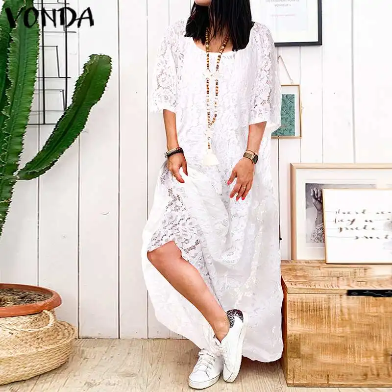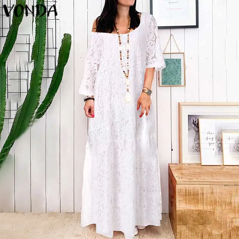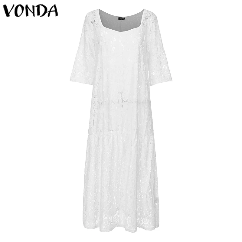 Ажурное Прозрачное платье VONDA женское хлопковое праздничное длинное платье вязаное крючком кружевное вечернее платье размера плюс Femme Vestidos S-5XL