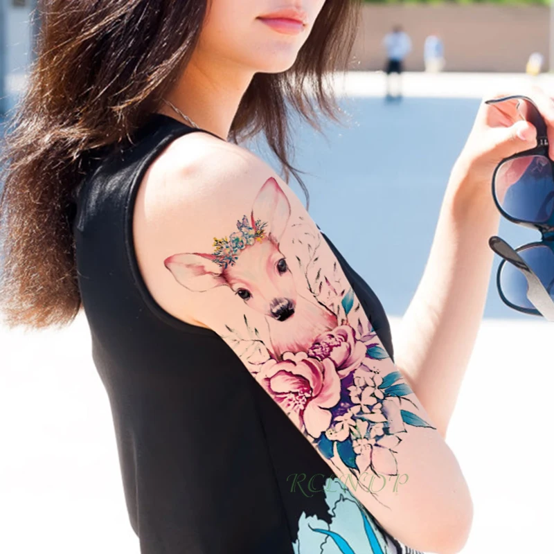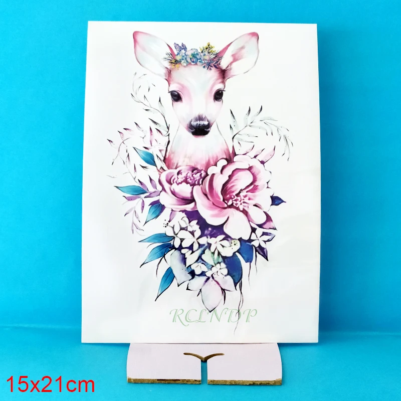 Водостойкая Временная тату-наклейка, мультяшный розовый олень, искусственный цветок, большой флэш-тату, искусственная тату для девочек, мужчин, женщин и детей