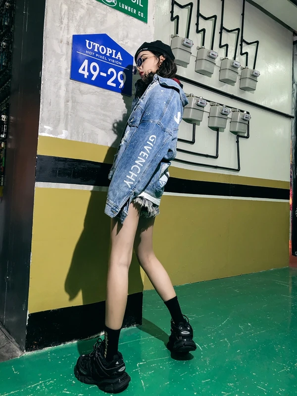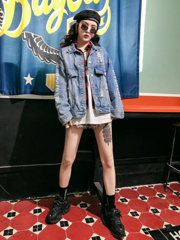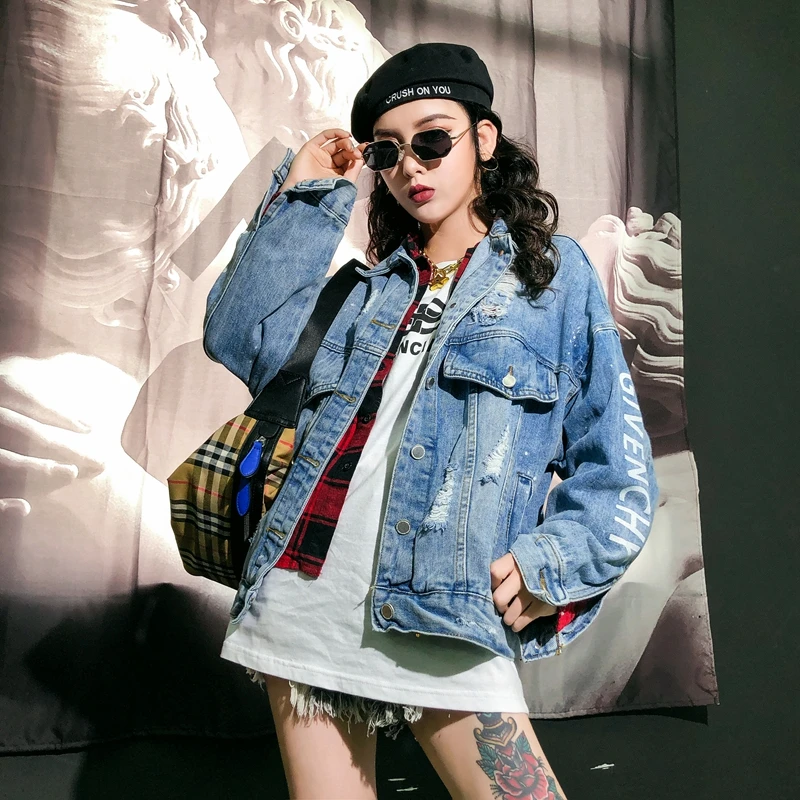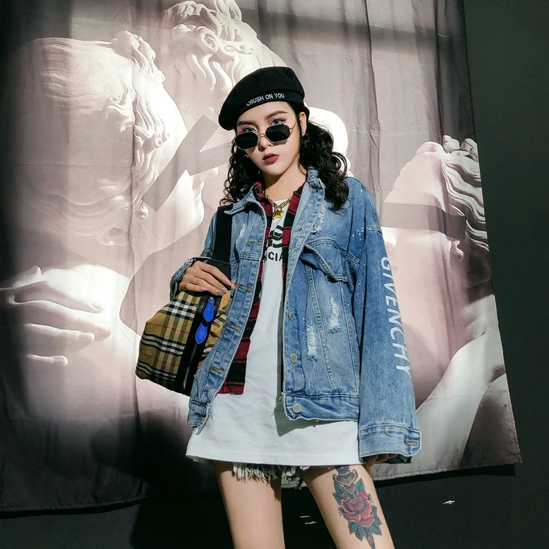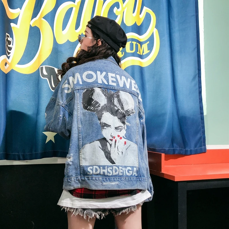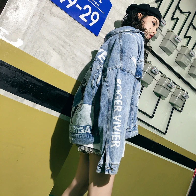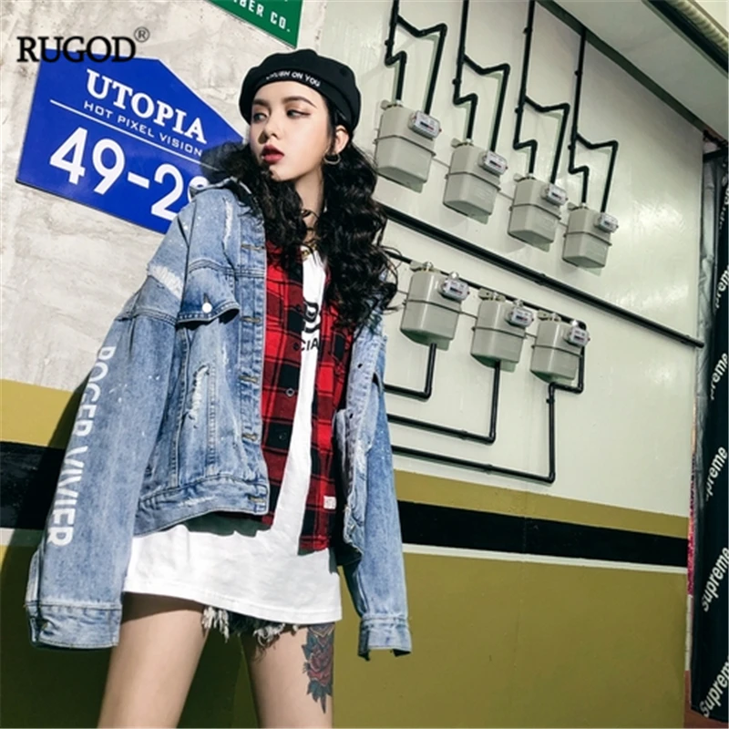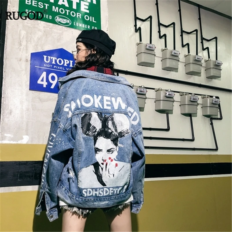 RUGOD Новая женская Свободная джинсовая куртка с надписью сзади в стиле панк пальто оверсайз шикарная Корейская ВИНТАЖНАЯ ДЖИНСОВАЯ КУРТКА
