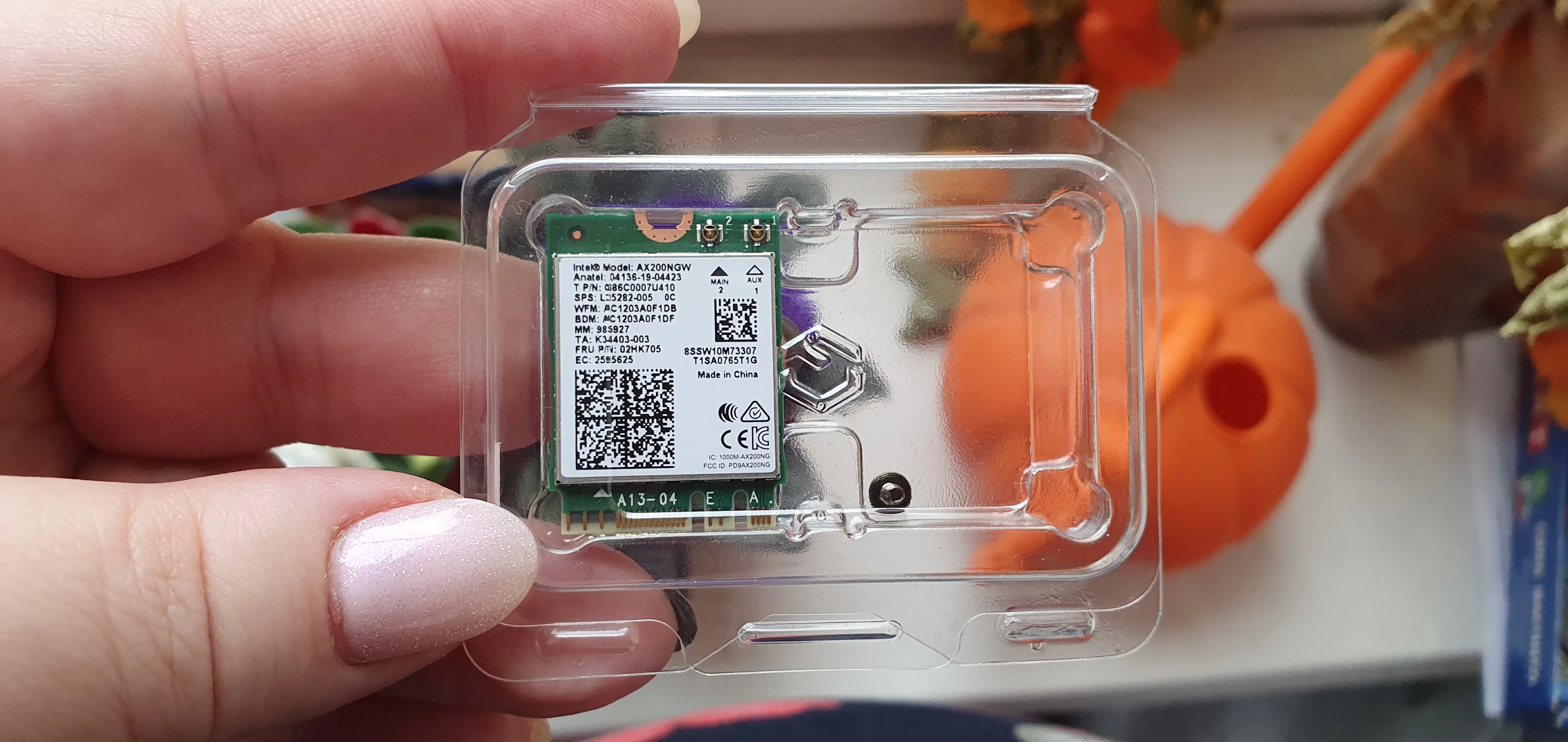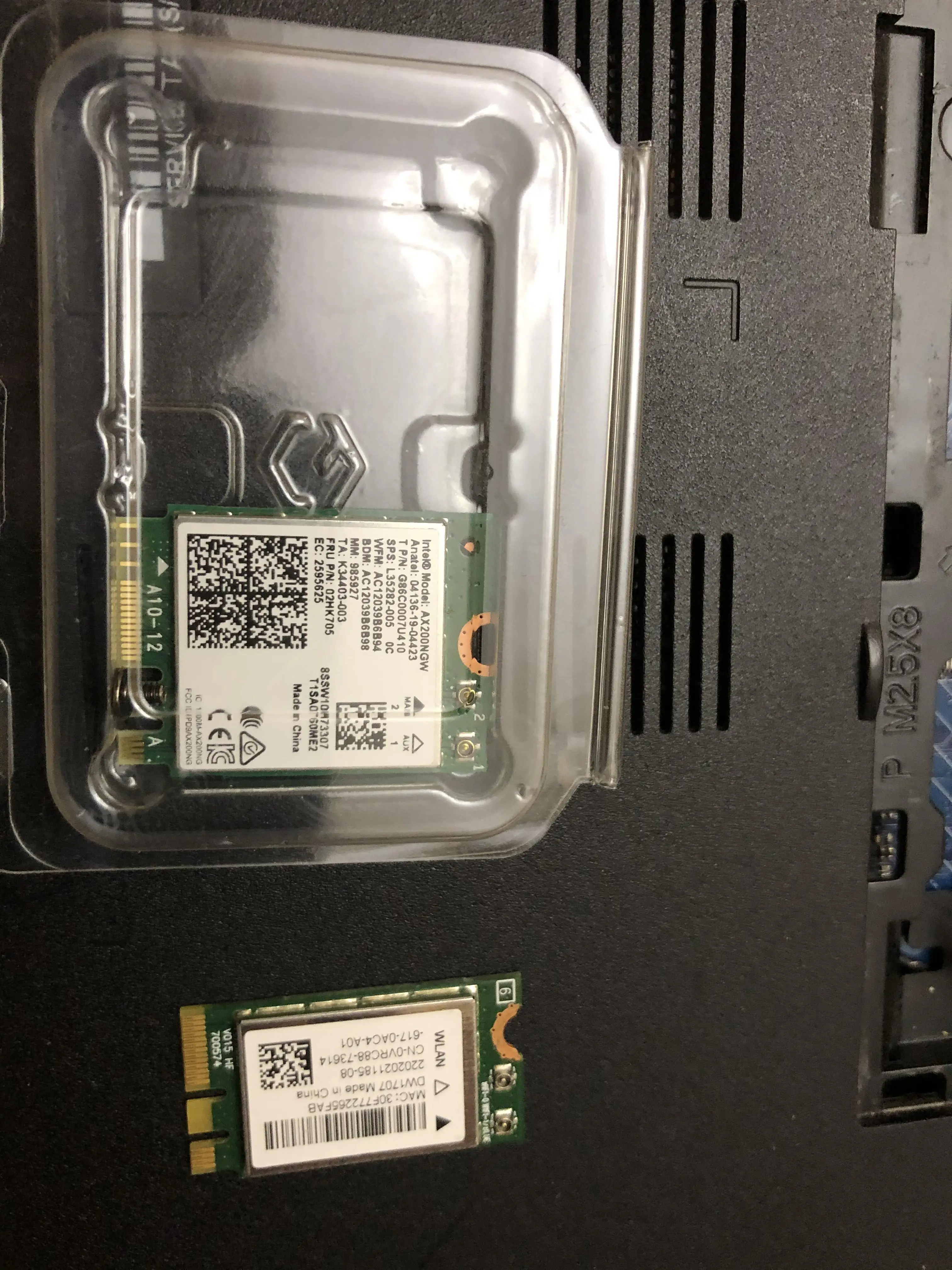 Заранее скачал драйвера с сайта Интел. Разобрал, поставил, установил драйвера, все заработало. Теперь скорость соединения одинаковая с 12 айфоном. Ноутбук Lenovo ideapad 720s-13arr (2018) на фото старый модуль в ноуте и новый в коробочке.