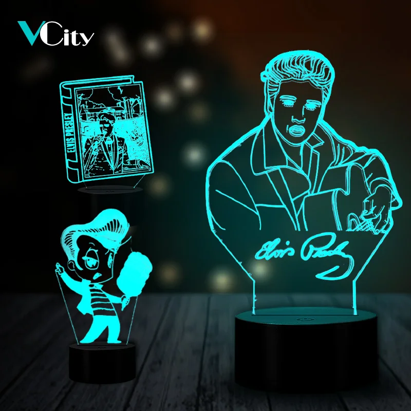 3D светодиодсветодиодный иллюзионная лампа VCity Elvis, атмосферное освещение, Декор для дома и спальни, люминария, новинка, настольная лампа, прикроватный подарок для детей, фанаты