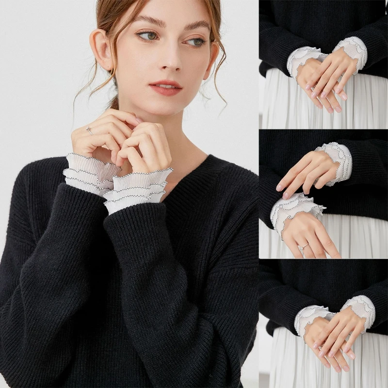 Съемная рубашка с расклешенными рукавами, накладные манжеты, однотонная плиссированная многослойный браслет, декоративный аксессуар для женской одежды