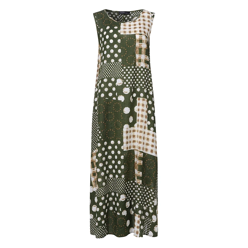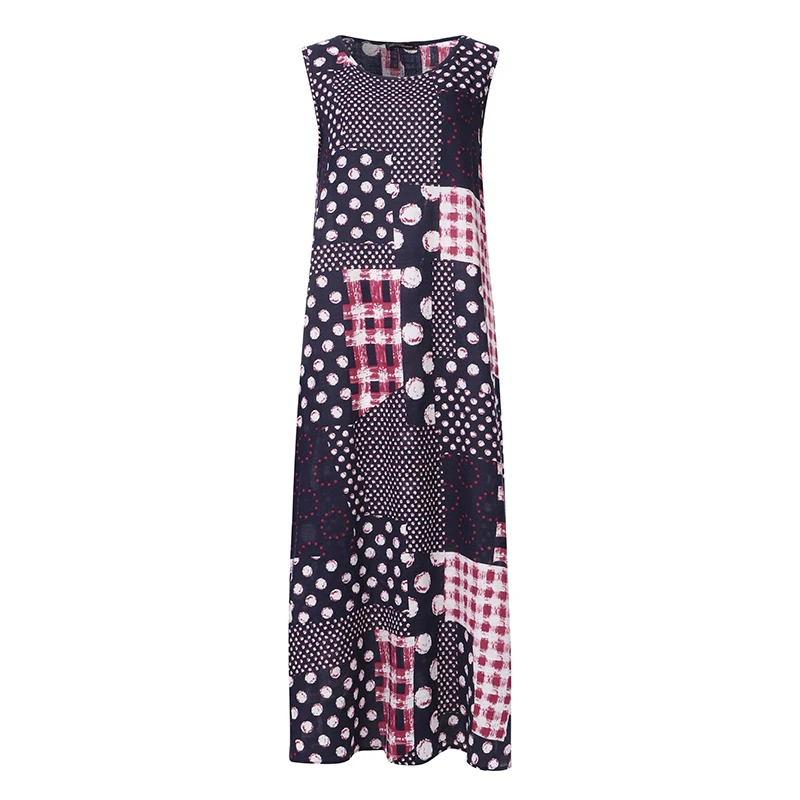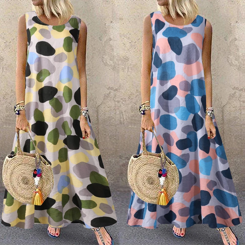 Женский Сарафан Макси с принтом, без рукавов, с круглым вырезом, лето 2021