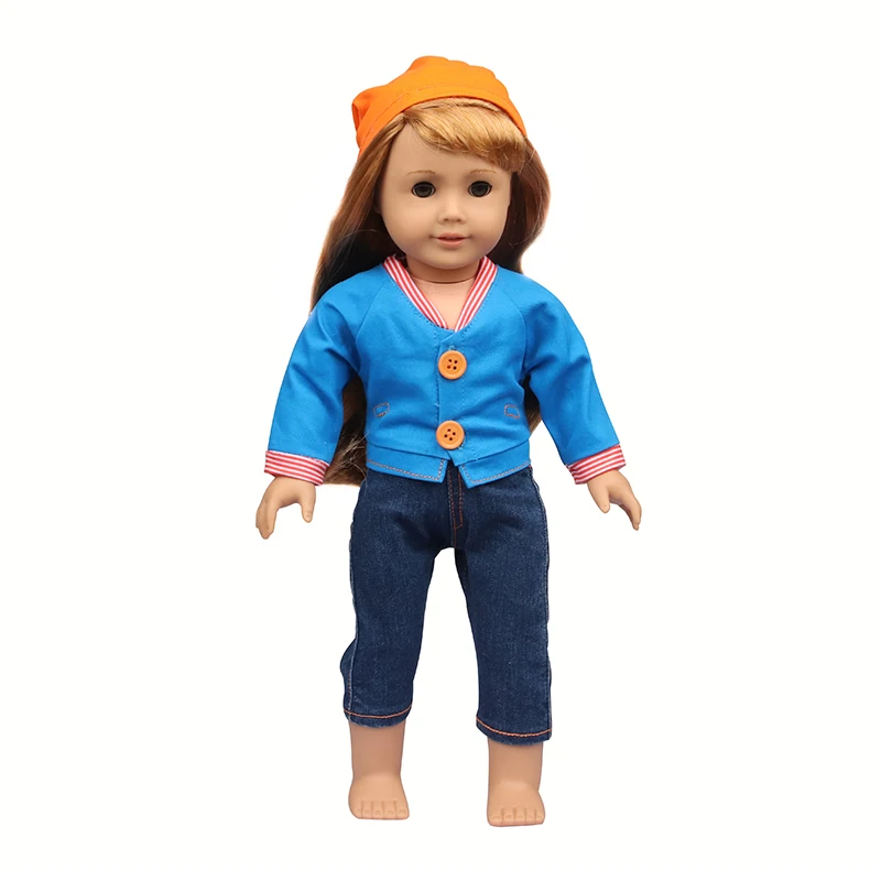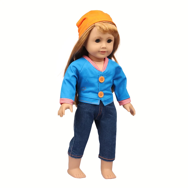 3 шт. пальто + джинсовые брюки + шапка 18 дюймов Американский кукольный костюм аксессуары Симпатичные инструменты Косплей Кукла Одежда для 43 см новые куклы
