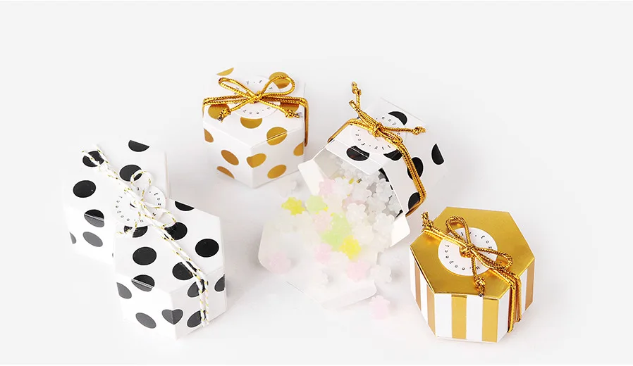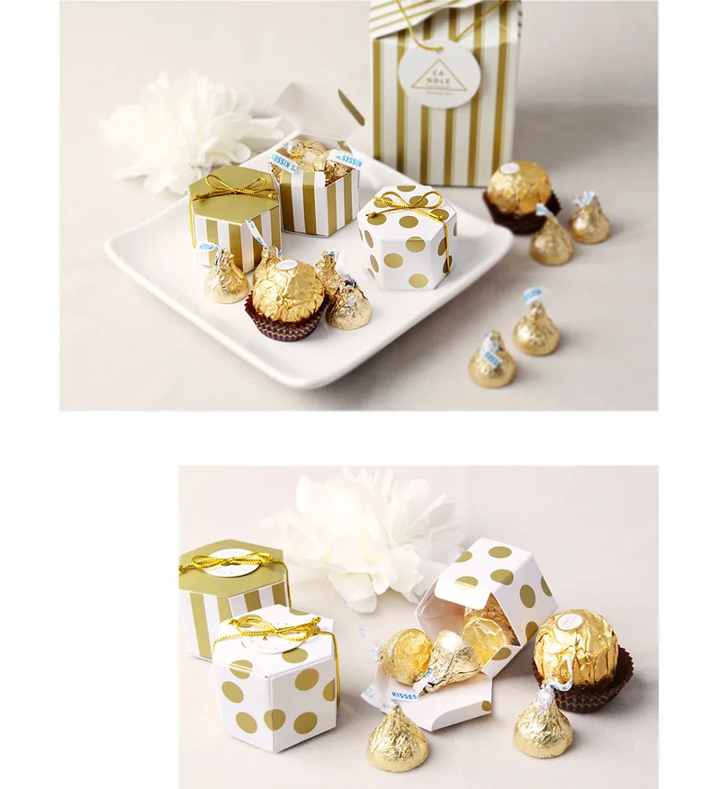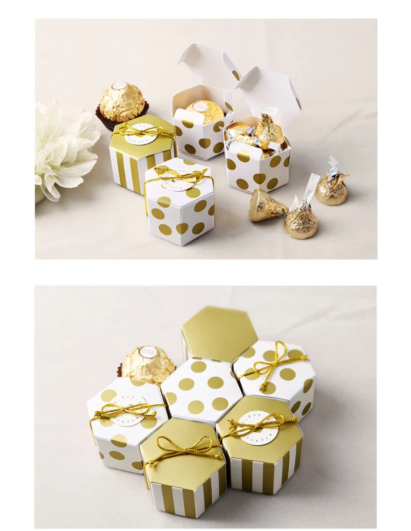 50 шт мини в полоску горошек Золотой шестиугольник Конфеты Подарочн...