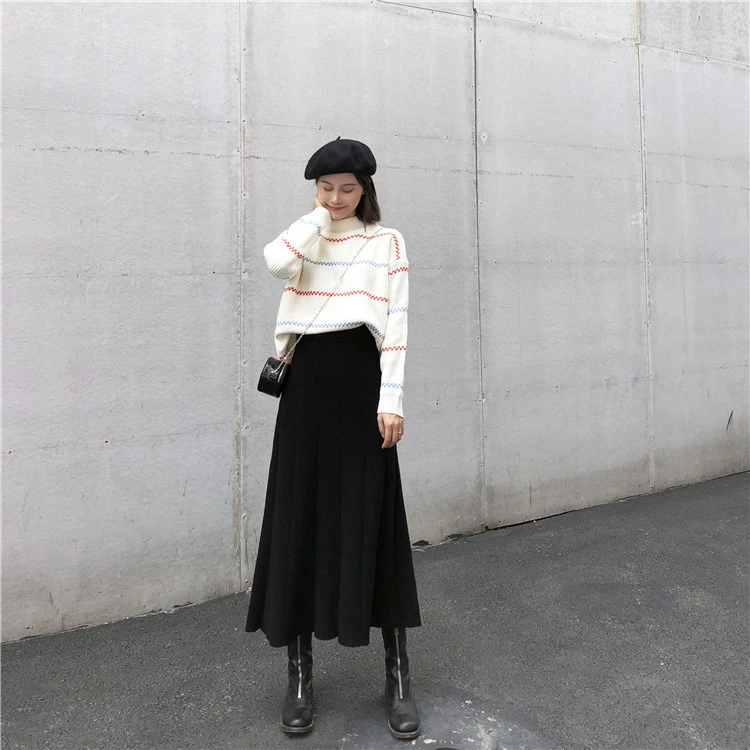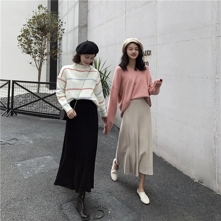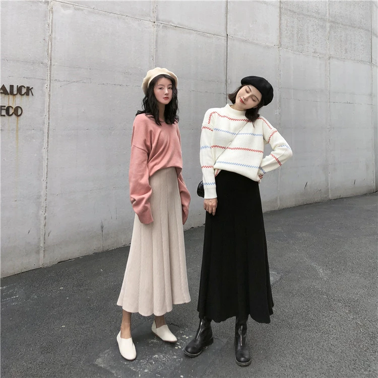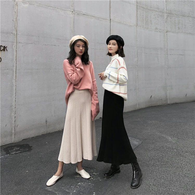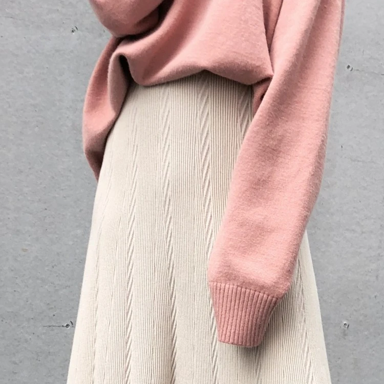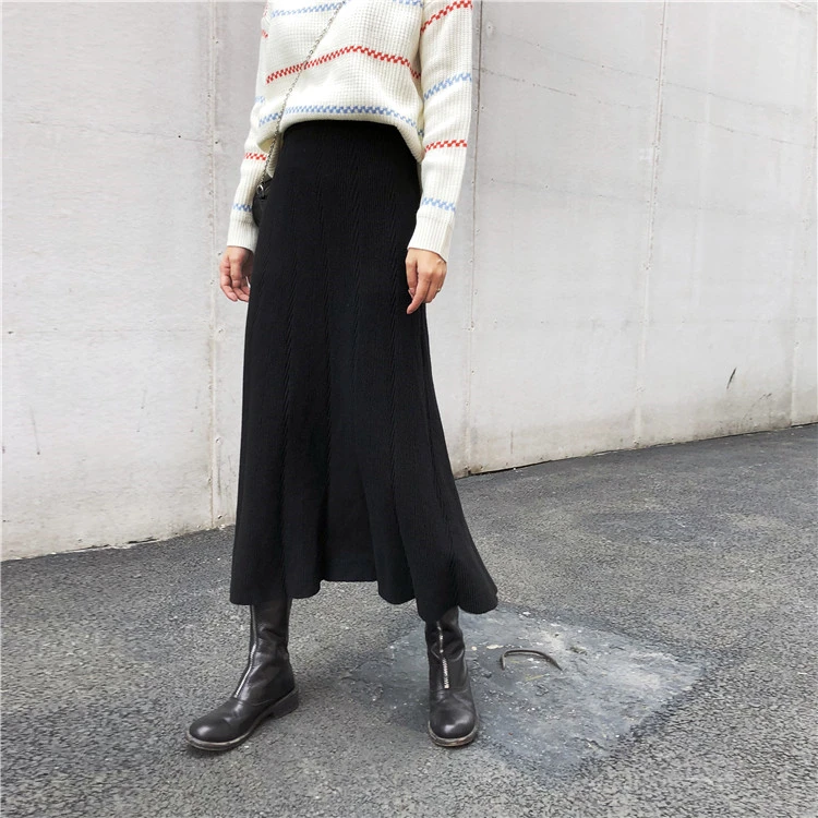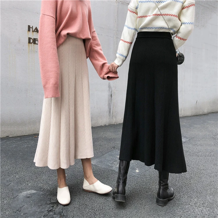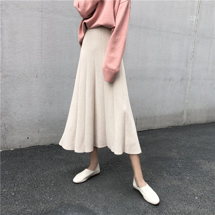 Женская трикотажная юбка-трапеция средней длины, до середины икры