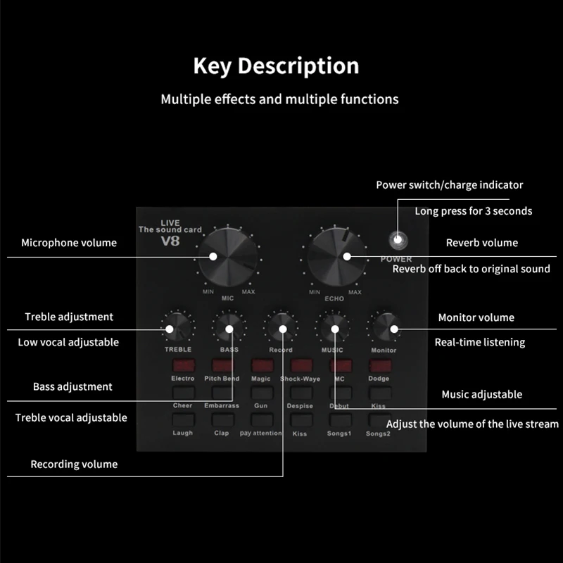 Аудиокарта V8 с интерфейсом внешнего интерфейса, живой Usb микрофон...