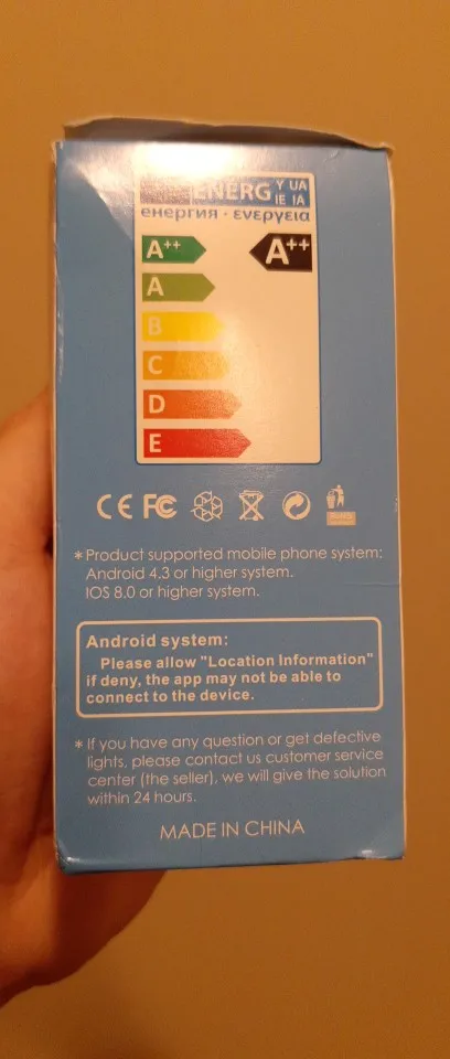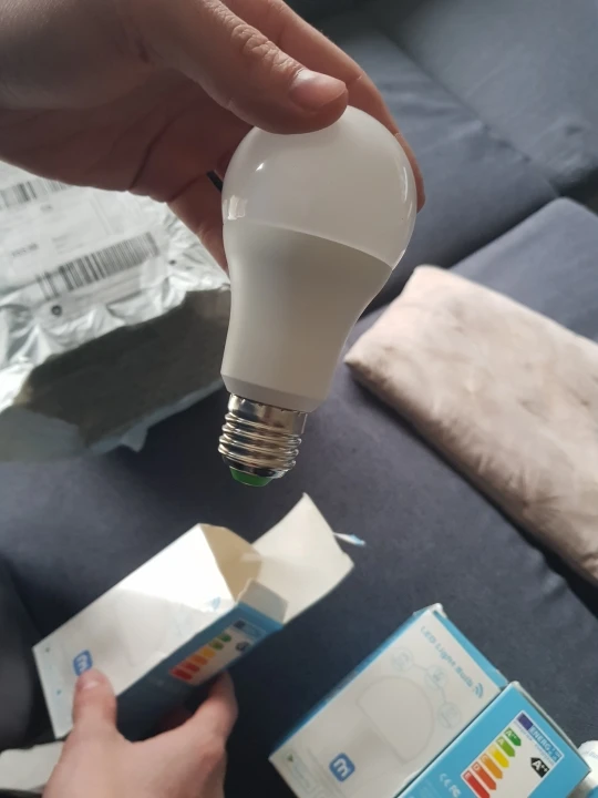 Хорошая лампа, светит ярко, хотя и не на 15вт, скорее 10-12вт. Из неудобств - работает по 2.4ггц. Гаснет и зажигается плавно. Приложение скачивается через QR код на упаковке. Свет хоть и брал "холодный" но он не голубоватый как у дешманских ламп, а очень приятный и не желтый, как у "телпых". Приехали в таких помятых упаковках что думал капец лампам, но на удивление никаких повреждений нет.