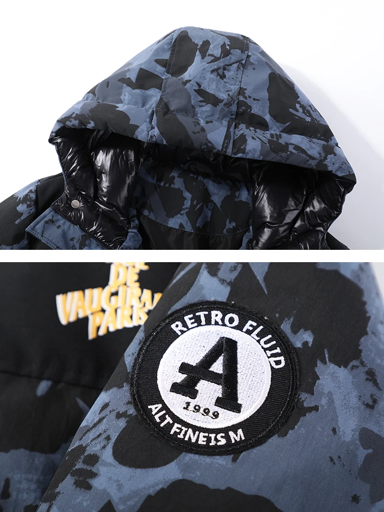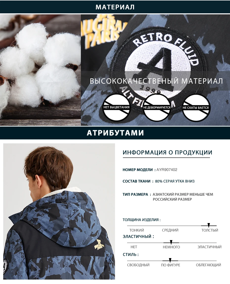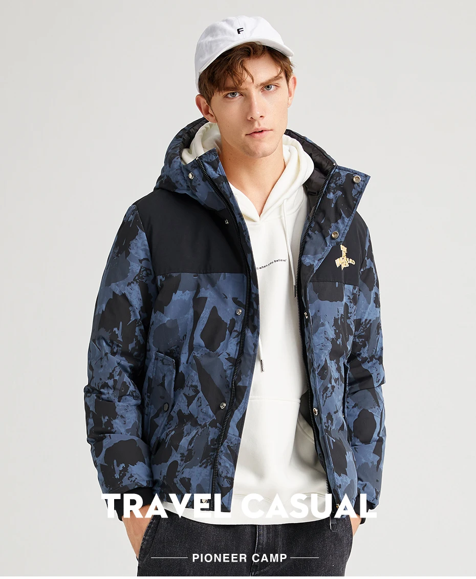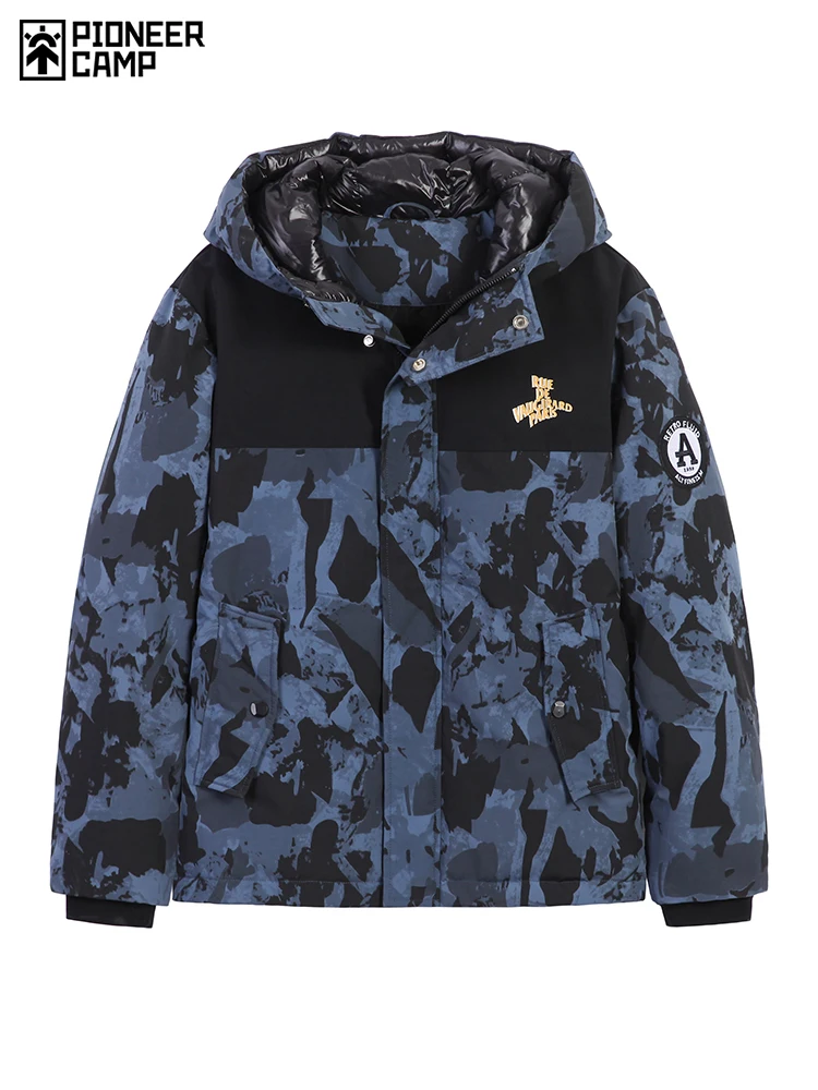 Мужская куртка-пуховик на утином пуху Pioneer Camp, куртка-парка с капюшоном с камуфляжным принтом анарак для канадских праздников, AYR907402