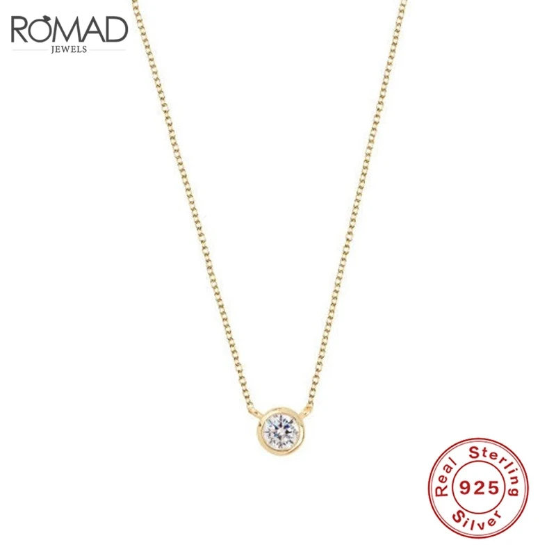 ROMAD круглый, кубический цирконий ожерелье женщин колье 925 пробы Серебряное ожерелье с фианитами Золотое Цвет короткие кулоны с цепочкой R50