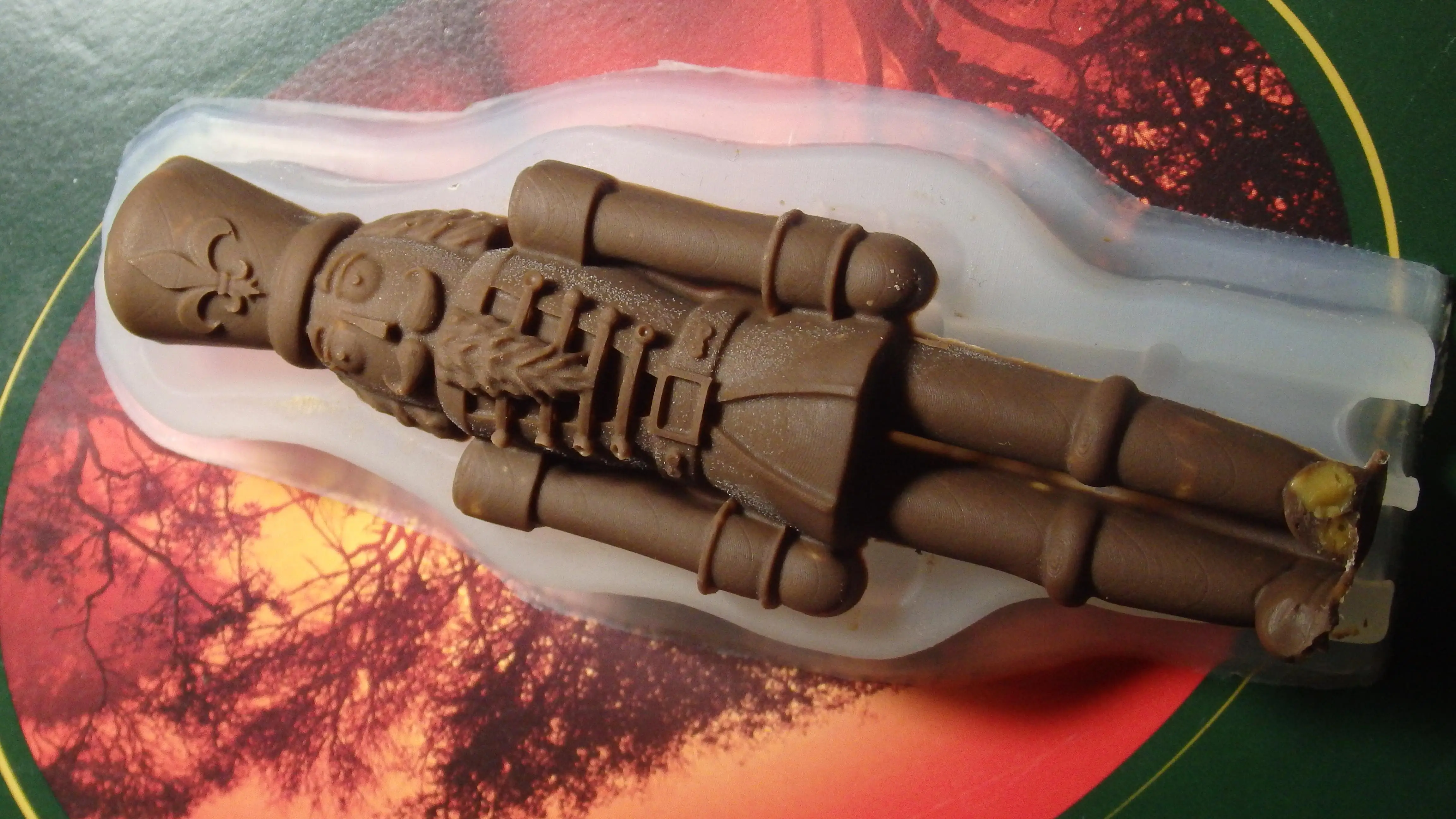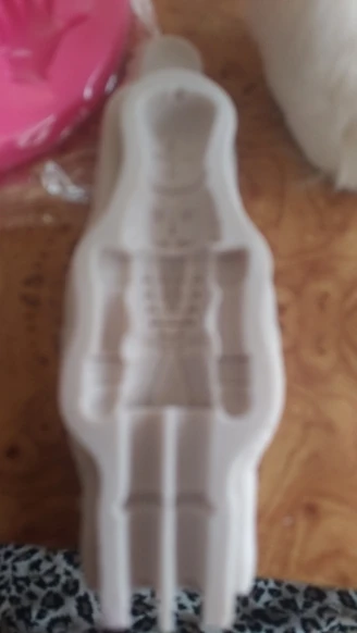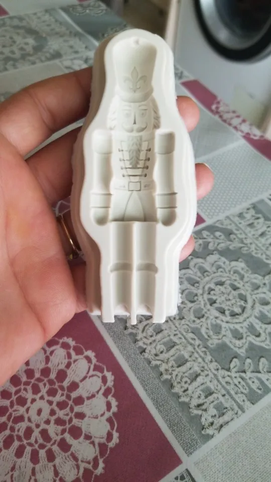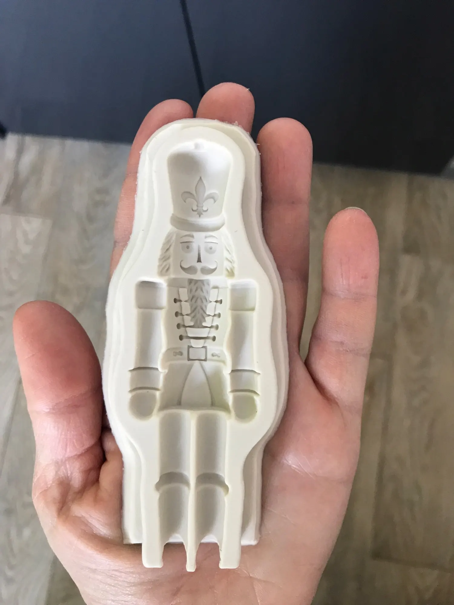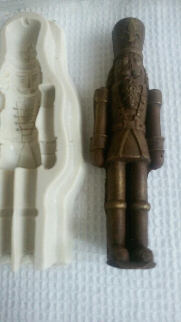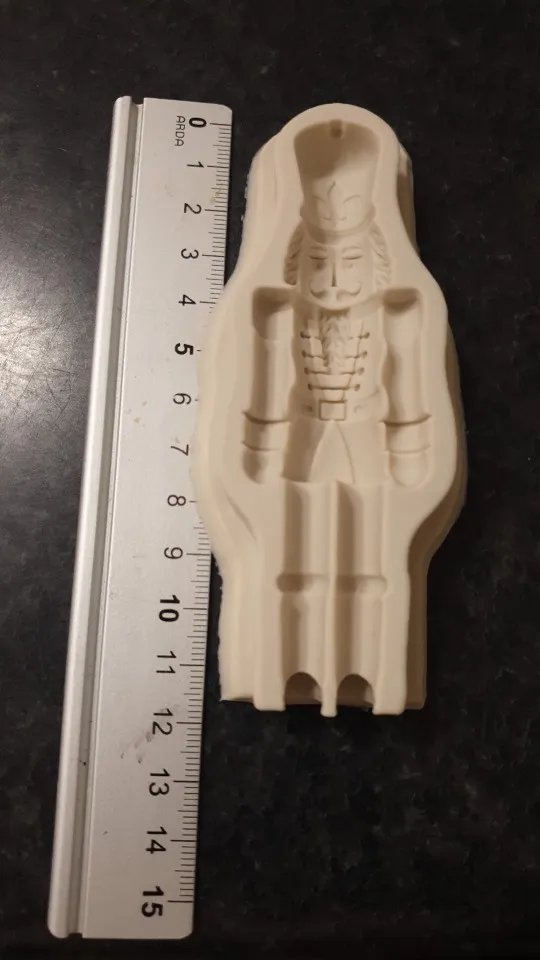 Чёткая силиконовая форма для Щелкунчика. Маленькая(10см), но детально проработанная. Только с подошвами не понятно что делать((( Пыталась клеить там скотч, но он к силикону не липнет. Отлично залился шоколад с карамелью. Форма мягкая. Доставка через "Пятёрочку" 12 дней. Спасибо продавцу! Рекомендую!