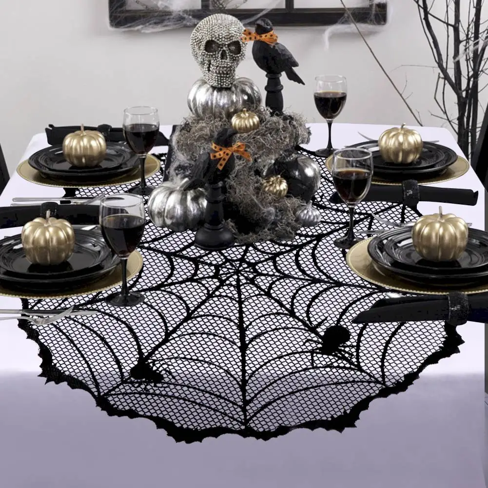 Украшение для Хэллоуина AerWo, Черное кружево, паутина на камин, на...