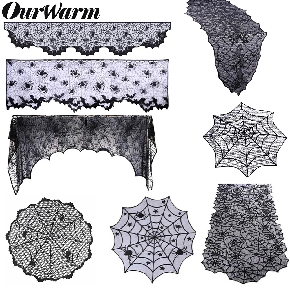 OurWarm украшение на Хэллоуин паутина камин шарф черная кружева пау...