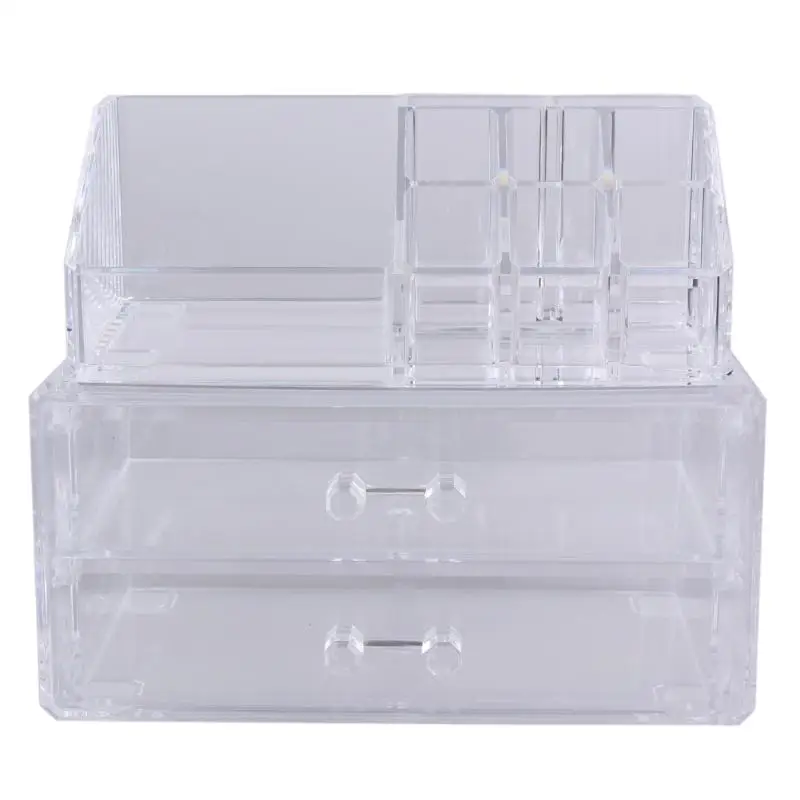 100% Новинка, высокое качествоВысокая Прозрачная отделка, модель элегантная, практичная и простая в использованииОрганизуйте кисти для макияжа, макияж и украшения с легким доступомДвухслойные Ящики обеспечивают много места для хранения косметикиХраните серьги, ожерелья, броши, подвески, кольца и многое другое в ящикахДержите макияж, помаду, блеск, тональную основу, лосьоны и кремы для легкого просмотра с отдельным хранилищем сверху.Если есть следы от грязи, аккуратно протрите зубной пастой и тканьюПодходит для использования дома или в магазинеМатериал: акрилЦвет: прозрачныйРазмер: прибл. 18,8x10x5,7 см (Д * Ш * В)