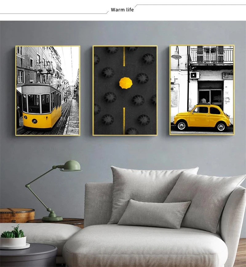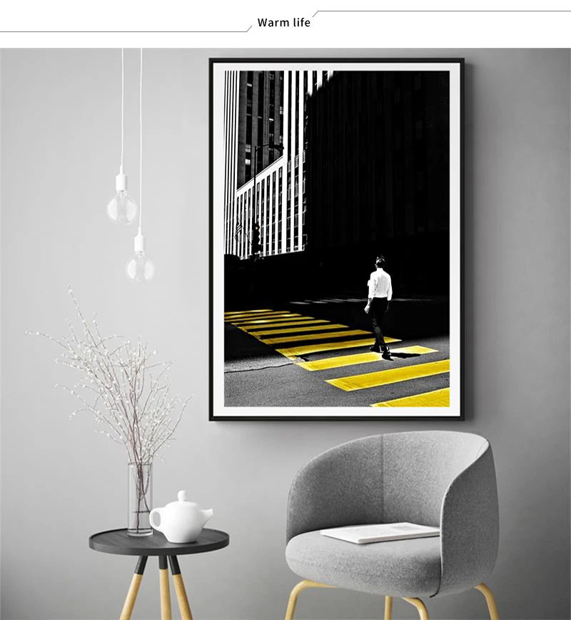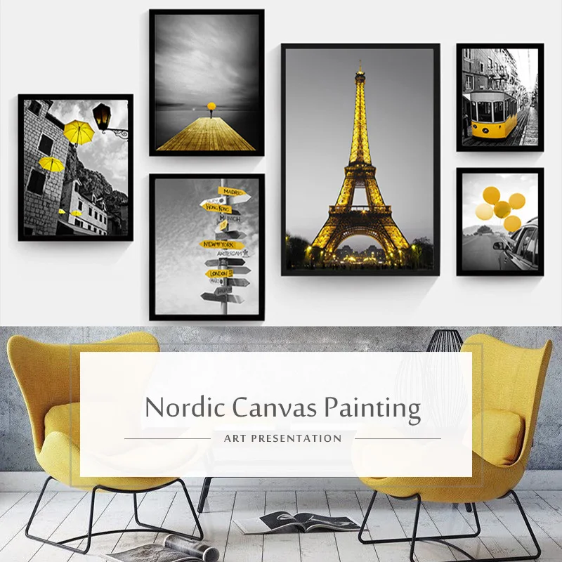 Картина с желтым пейзажем, домашний декор Скандинавская Картина на холсте, настенный художественный принт, черно-белый фон, пейзаж для гостиной