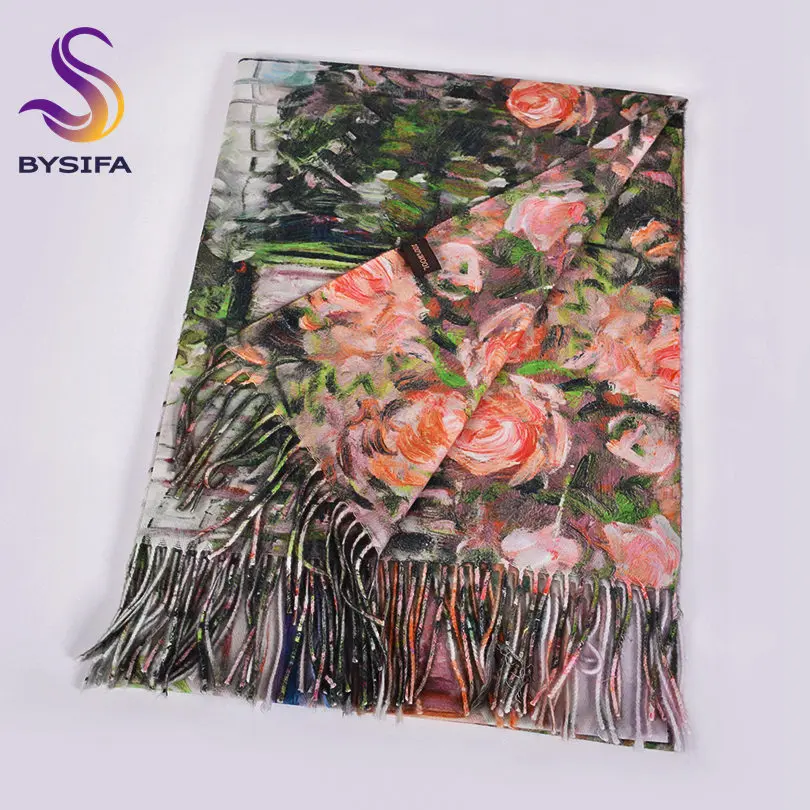 Женские кашемировые шарфы BYSIFA, зеленые и розовые шарфы из пашмины, утепленные теплые шарфы для шеи, * 70 см