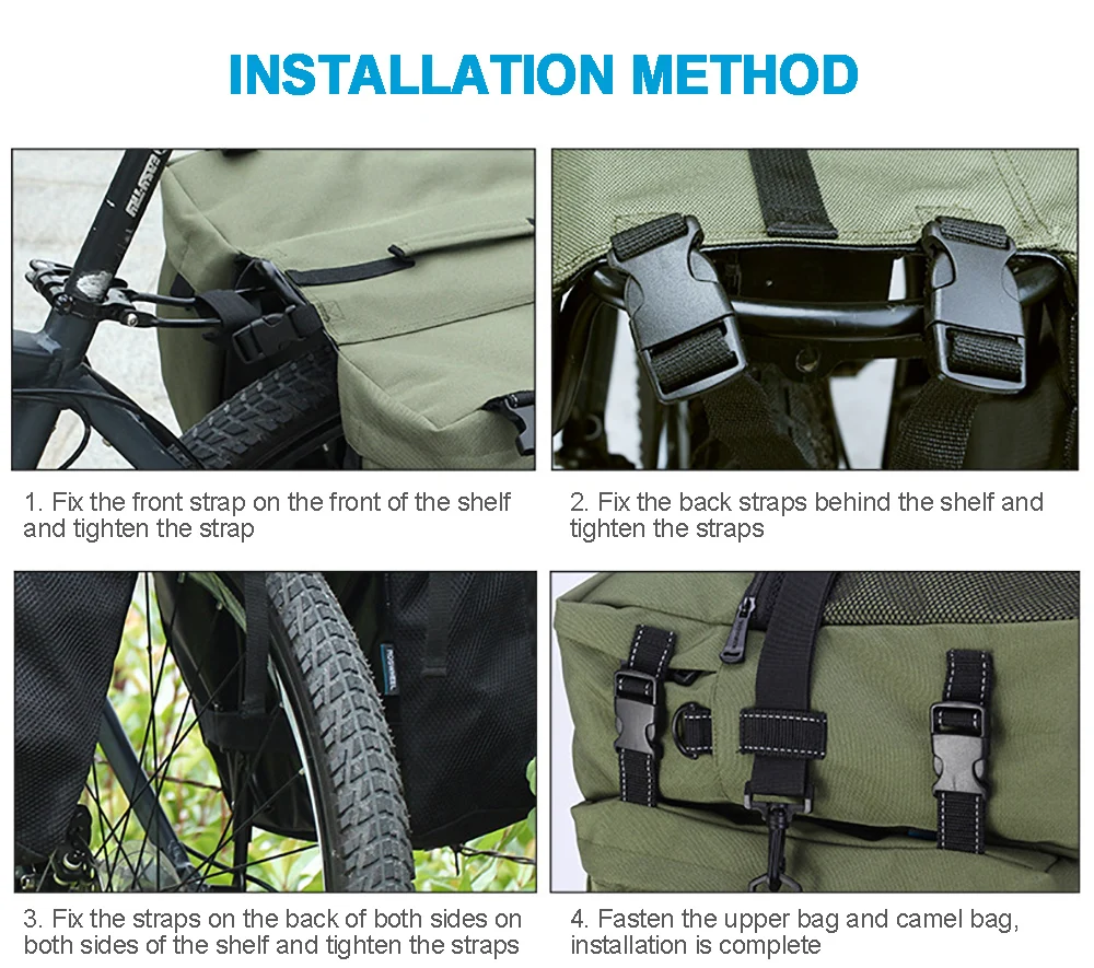 Спецификация:Материал: нейлон 600DЕмкость: 37ЛРазмер верхней сумки: 35x30x13 смРазмер боковой сумки: 30x13x31 смРазмер сращивания между двумя боковыми сумками: 30x15 смЧасто задаваемые вопросы:В: Могу ли я очистить свои велосипедные панниры?О: Конечно, вы можете. Для обычной дорожной грязи просто шланг вниз ваши panniers. Используйте достаточно воды, чтобы грязь полностью потекла. Если грязь высохнет и торты на ткани, вы можете использовать мягкую щетину для пола вместе с водой. Никогда не используйте только кисть, так как она будет углублять грязь.В: Должен ли я выполнять какие-либо виды обслуживания на панелях?О: панье-это не велосипед, но есть детали, которые нужно проверять время от времени, такие как состояние молнии или пряжка.Посылка Вес: 1,35 кгРазмер посылка (Д x Ш x В): 40,50x37,50x4,00 см/15,94x14,76x1,57 дюймовПосылка: велосипедная Сумка-1 шт.