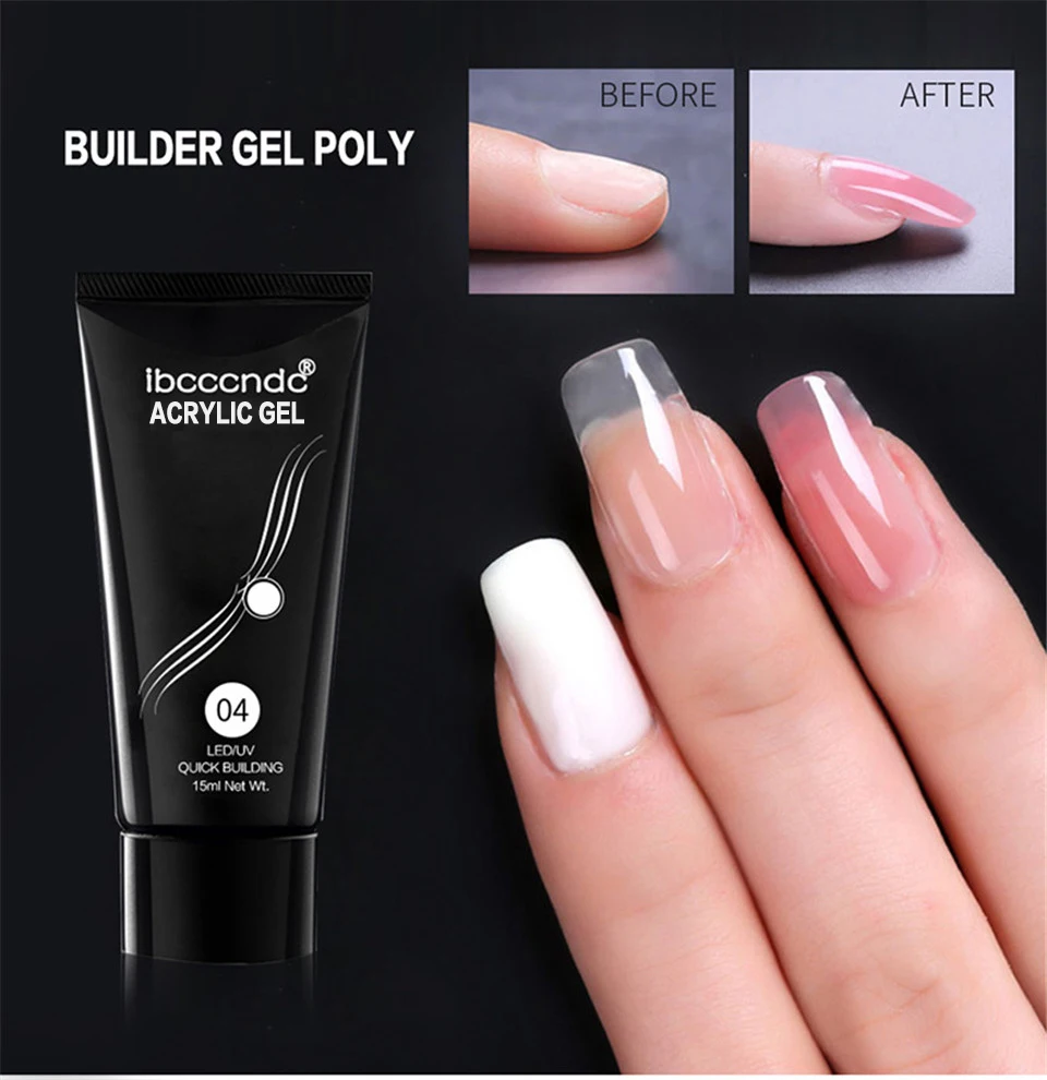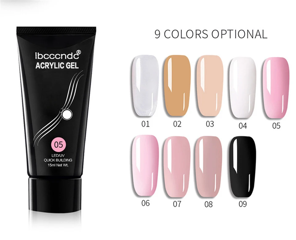Хит продаж, 9 цветов, 15 г акрилового геля для наращивания ногтей, Кристальный гель для ногтей, твердый УФ-гель для светодиодной УФ-лампы, акриловый гель, раствор для наращивания ногтей
