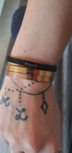 Браслет в порядке, но гравировка действительно не соответствует моим ожиданиям. Ткань слишком тонкая, слишком маленькая, почти неразборчивая, если вы не очень близко друг к другу, и в некоторых местах она плохо закончена... Я разочарован.