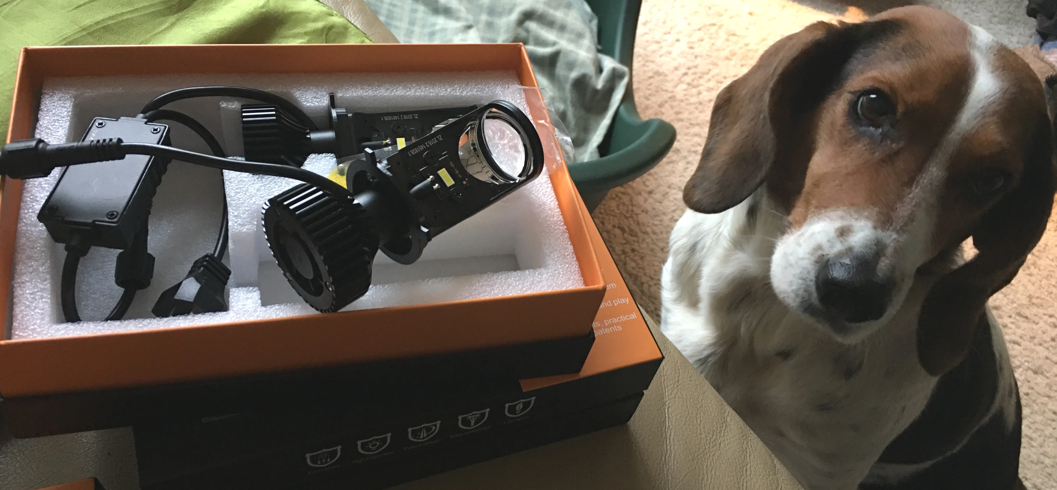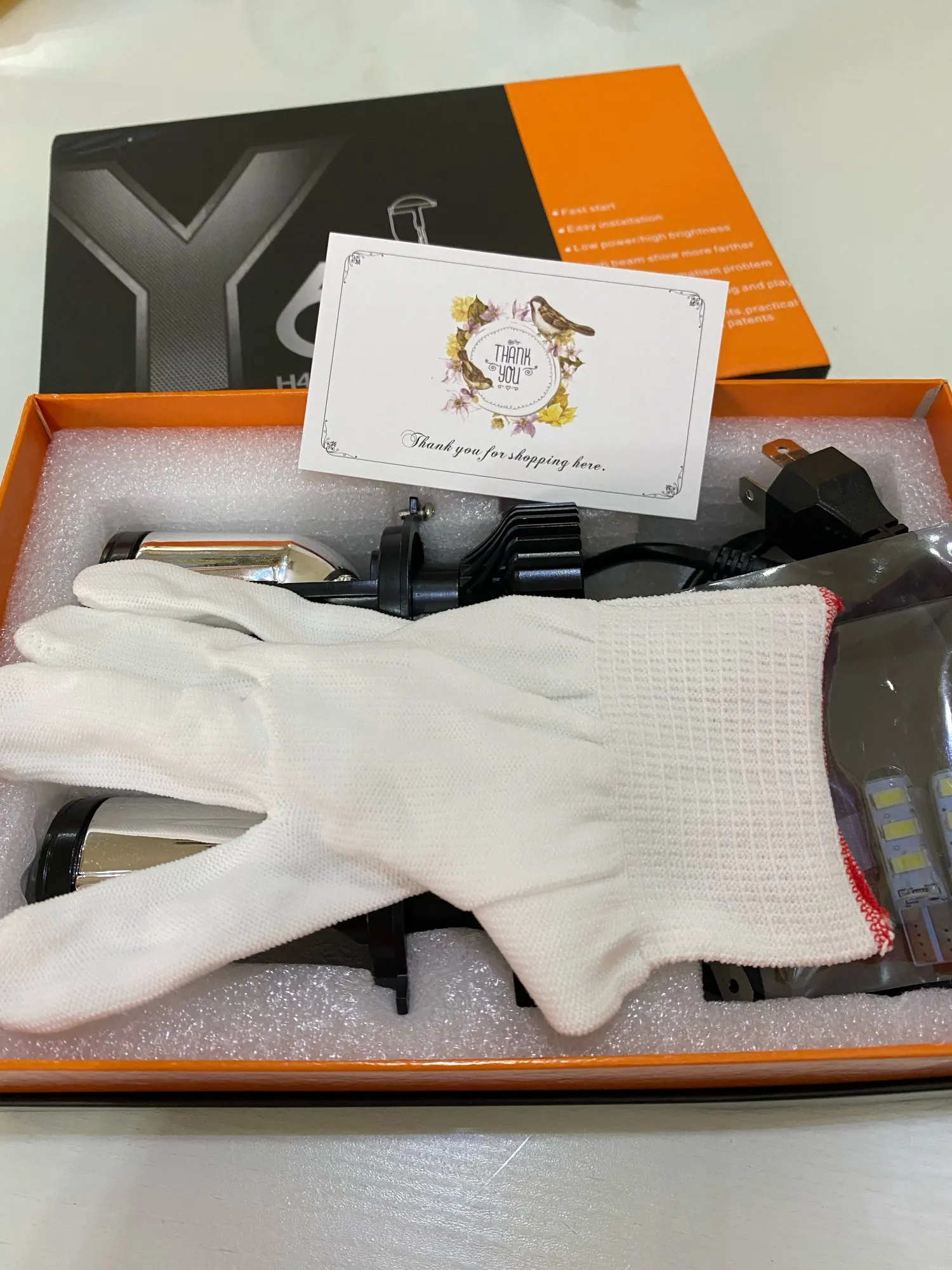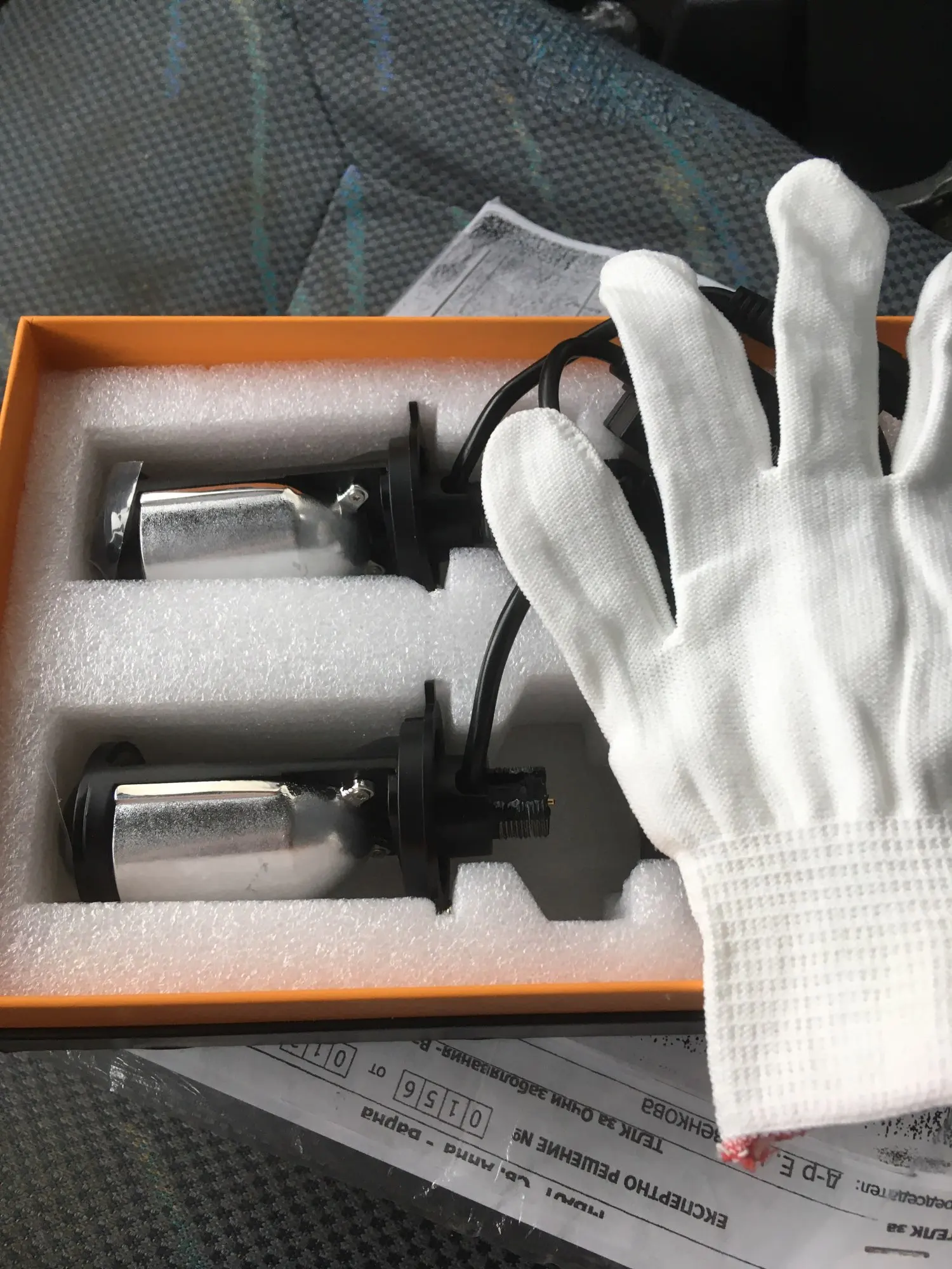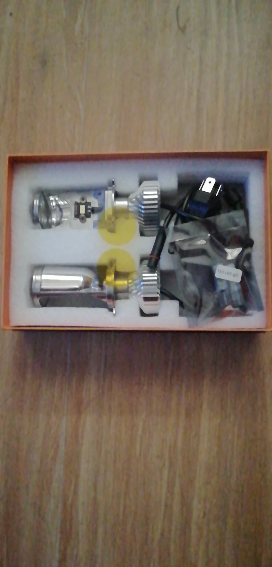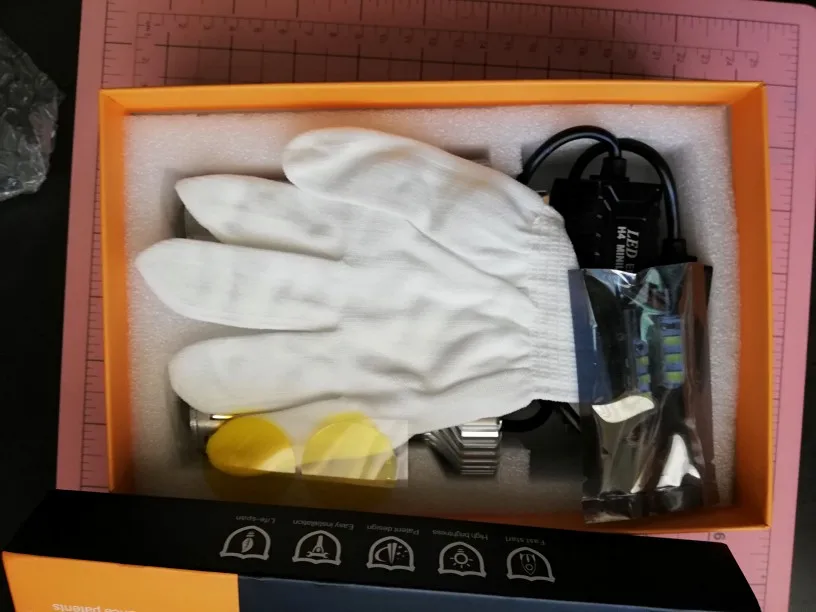 Получил сегодня, 5 ноября в Бишкеке. Товар шёл чуть больше месяца. Пока не устанавливал, на первый взгляд все целое. В комплекте также 2 диодных лампы для габаритов, перчатки и жёлтые фильтра для наклейки на линзу.
