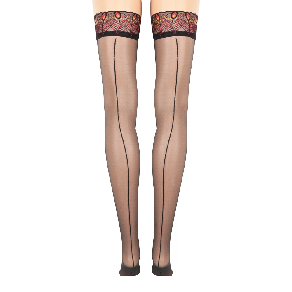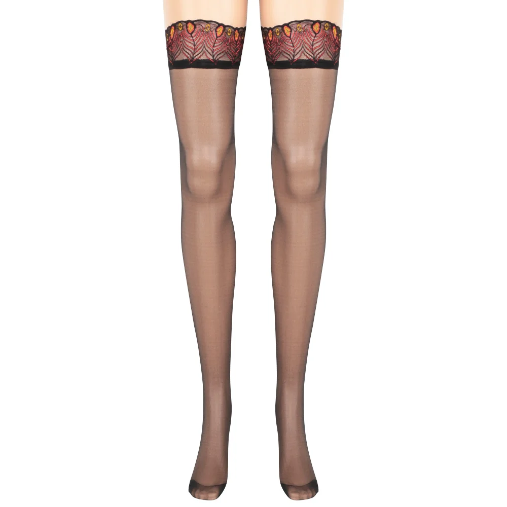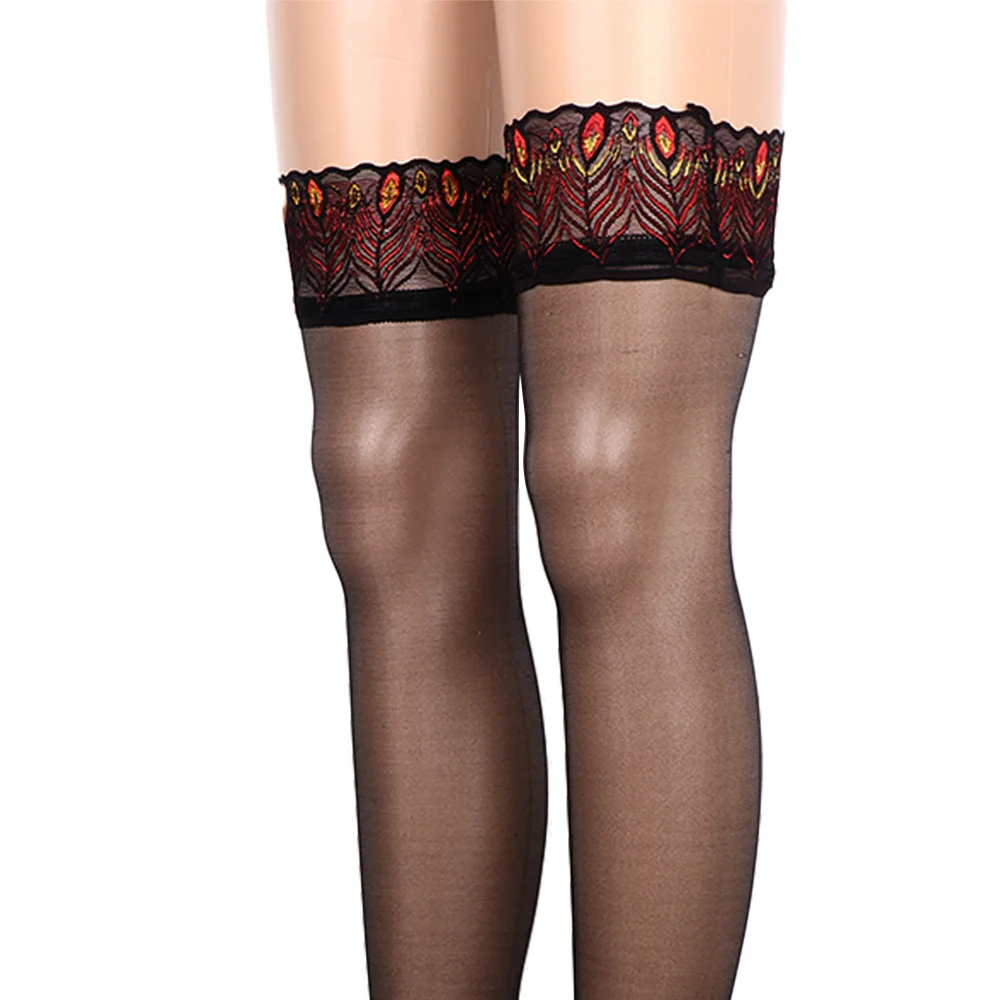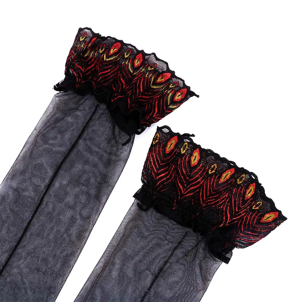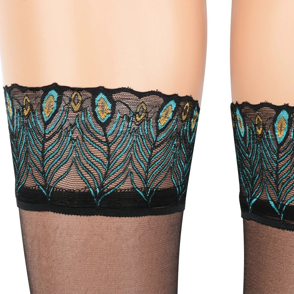 Пикантные женские чулки с узором в виде перьев павлина, привлекательные кружевной чулок выше колена, тонкие чулки до бедра