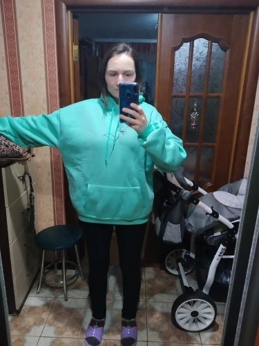 Теплая, мягкая толстовка, цвет как на картинке, очень красивый мятный. В Беларусь шла больше 2х месяцев, наконец дошла! На ОГ 85см по ширине свободно, оверсайз как и хотела. На рост 166см по длине чуть прикрывает попу, хотелось бы длиннее, но пойдёт. Покупкой в целом довольна!