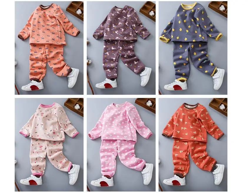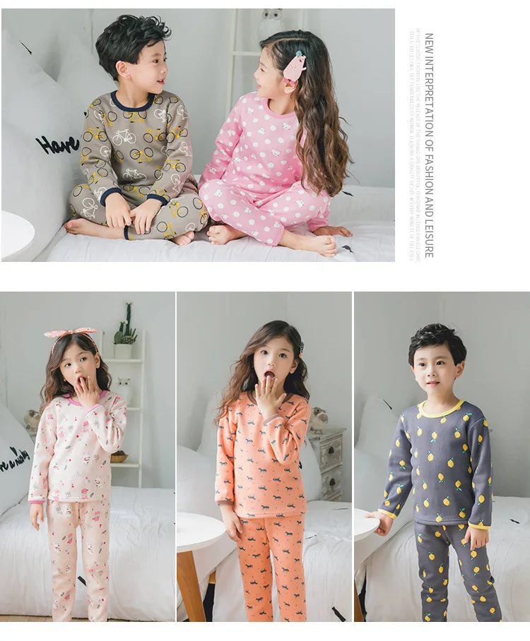 Зимний пижамный комплект для маленьких детей, утепленное флисовое термобелье для мальчиков и девочек, комплект одежды для сна для детей 3, 4, 6, 8, 10 лет