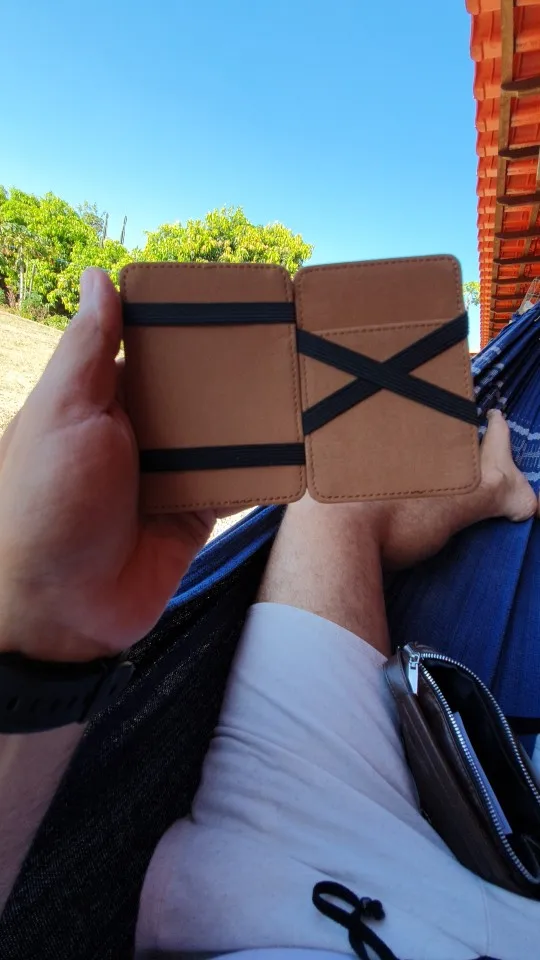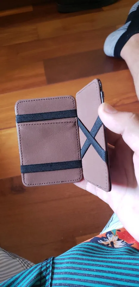 Заказал 29.03.2021 Получил 15.04.2021 Новой почтой несколько заказов с разных магазинов вмести Вещь оригинальная но больше 3$ не стоит, сверху материал хорош, внутри так себе, где две карты не всунеш точнее их не вытащить потом, деньги купюры 100+ грн. согнутыми вдвое широкие никак не примет. Итог - очень оригинальная вещь лишь для 3 карт и 1 визитки.