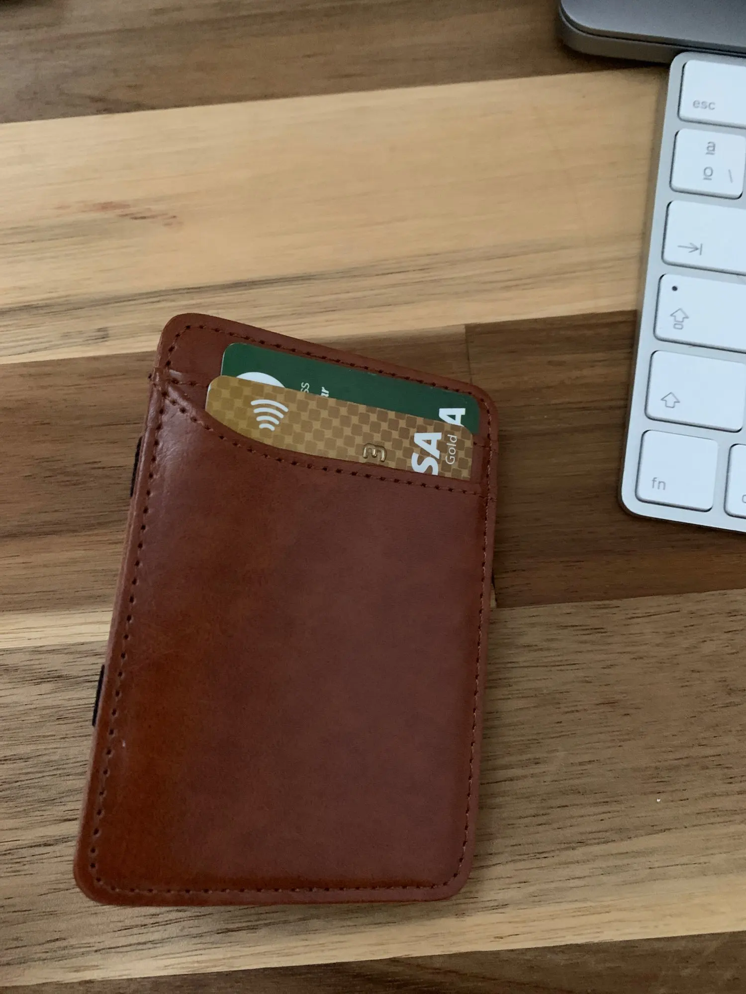 Отличный холдер - размерами чуть больше чем подарочный от Тинькова (взамен потрепанного и заказал).
