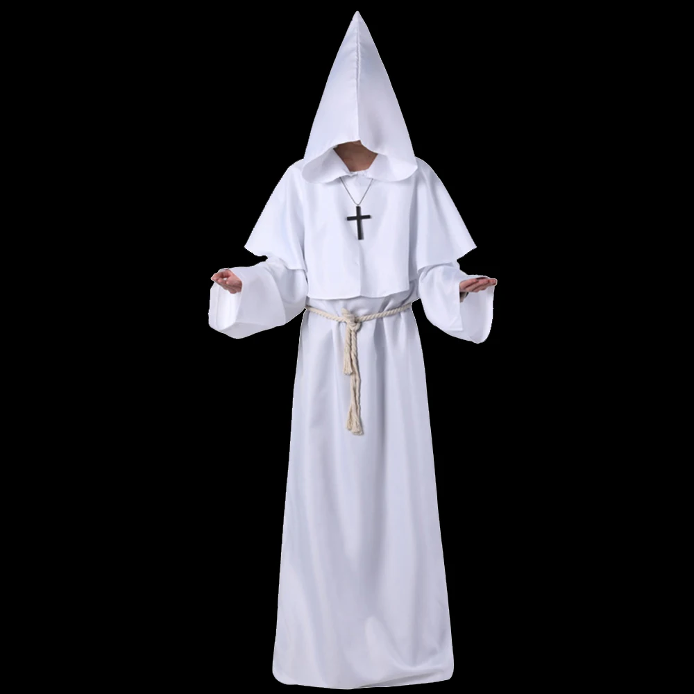 Костюм ведьмы на Хэллоуин, христианский костюм папы, средневековый монах, платье унисекс, платья с капюшоном и поясом, черно-белый