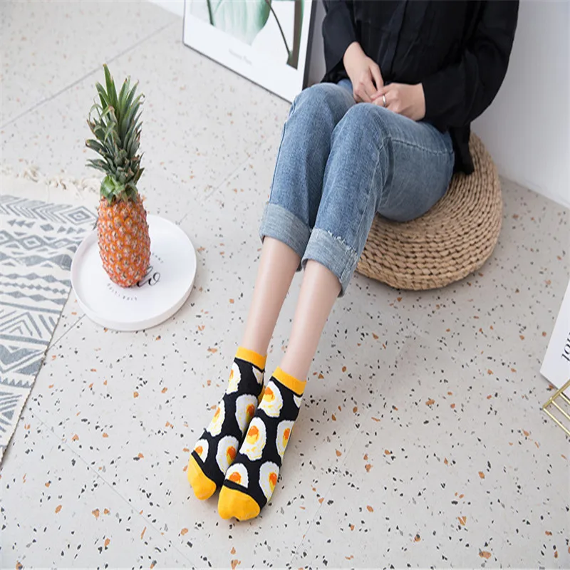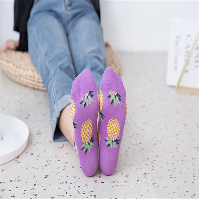 Носки женские хлопковые короткие, с принтом в виде фруктов, животных, авокадо, фламинго, еды