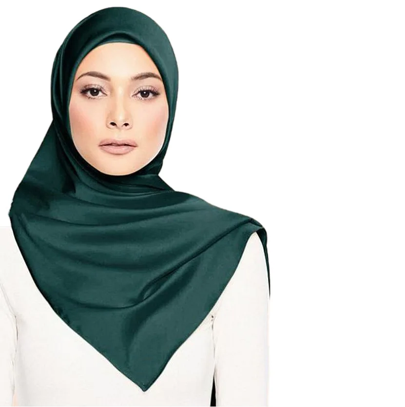 Новый малазийский Хиджаб Шелковый 90*90 шарф для женщин однотонные цветная бандана женский платок мусульманский хиджаб шарф исламский головной убор